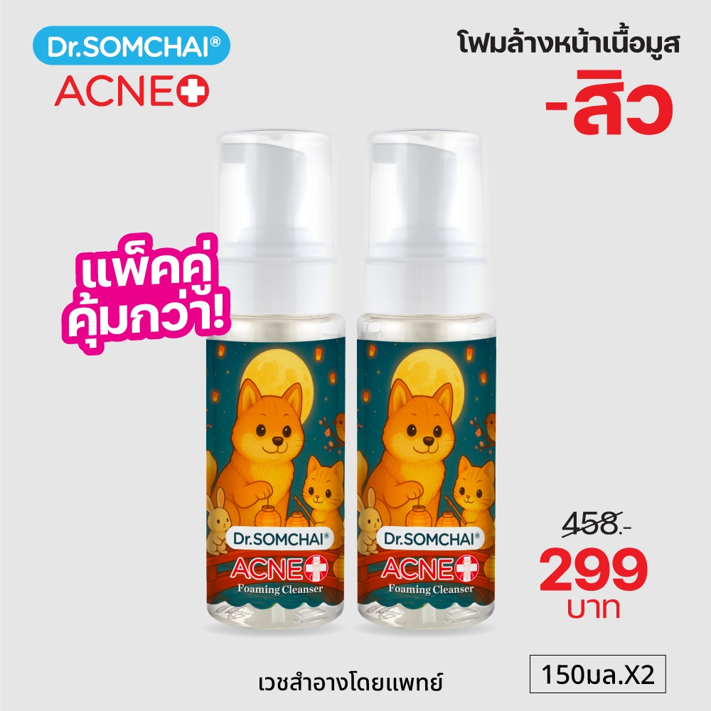 แพ็คคู่1+1 MUSE OF SUMMER Dr.Somchai Foaming Cleanser 150 ml. โฟมล้างหน้า สูตร Salicylic สำหร