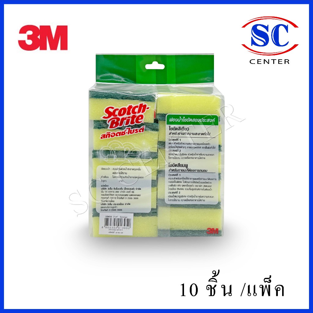 3Mสก๊อตช์ไบรต์มีฟองน้ำ 3mฟองน้ำล้างจาน (สีเขียว) แพ็ค10ชิ้น(สินค้าพร้อมส่ง)