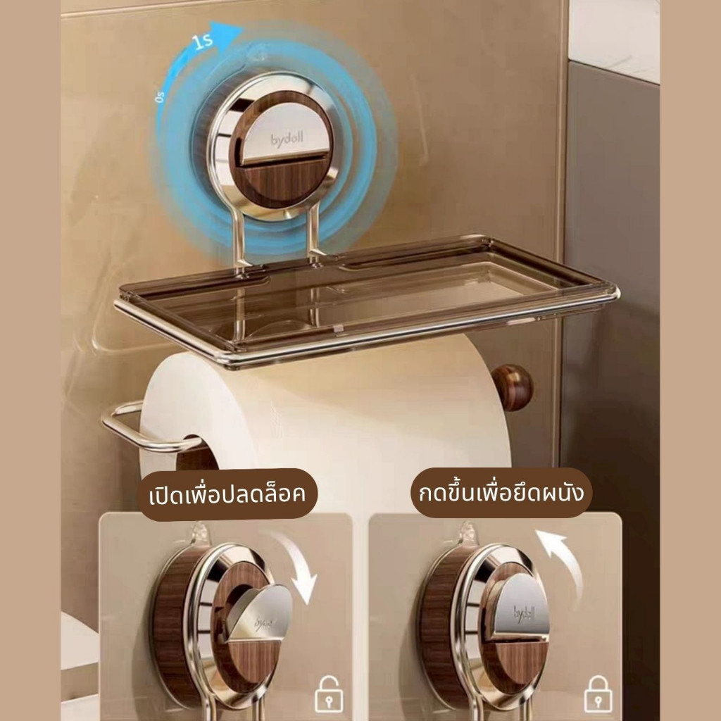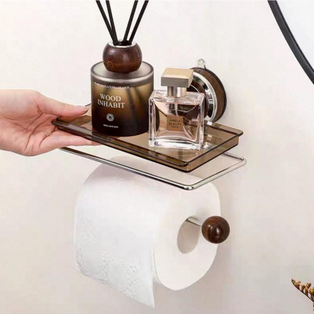 ที่ใส่ทิชชู่สแตนเลส แบบ 2 IN 1 ที่แขวนกระดาษทิชชู่ สูญญากาศติดผนัง วางของได้ ดีไซน์เรียบหรู ติดตั้งง่าย พร้อมส่งในไทย