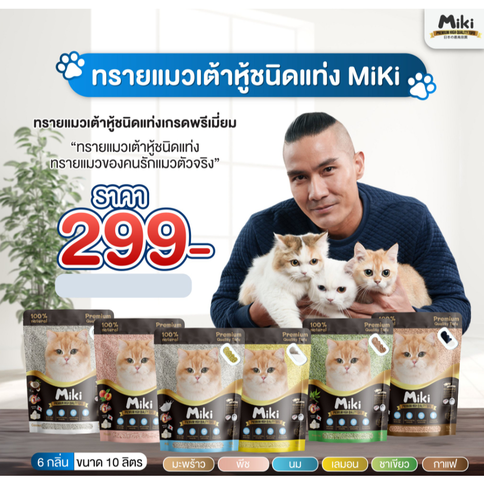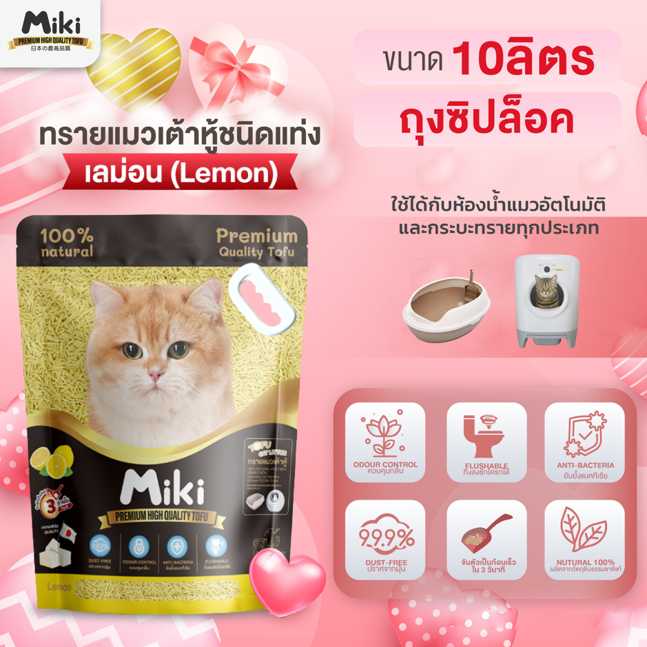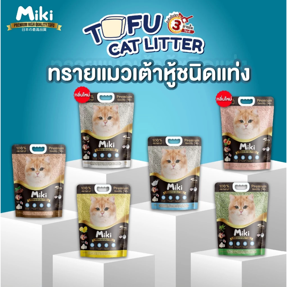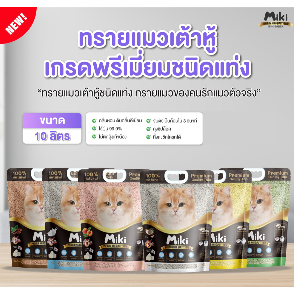 MiKi ทรายแมวเต้าหู้ ดับกลิ่นดีเยี่ยม จับตัวเป็นก้อนเร็ว ไร้ฝุ่น ทิ้งชักโครกได้ 10 ลิตร หอมนาน มิกิ ทรายเต้าหู้พรีเมี่ยม