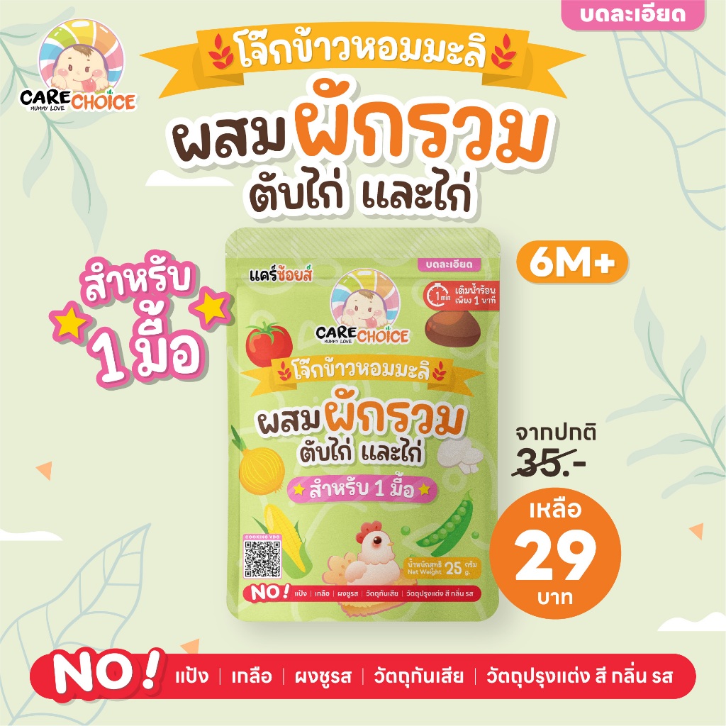 C316 แคร์ช้อยส์ โจ๊กกึ่งสำเร็จรูปเซ็ตจัมโบ้ 10 ซอง สำหรับเด็ก 6M+ ชนิดซอง 1 มื้อ (5 รสชาติx2)