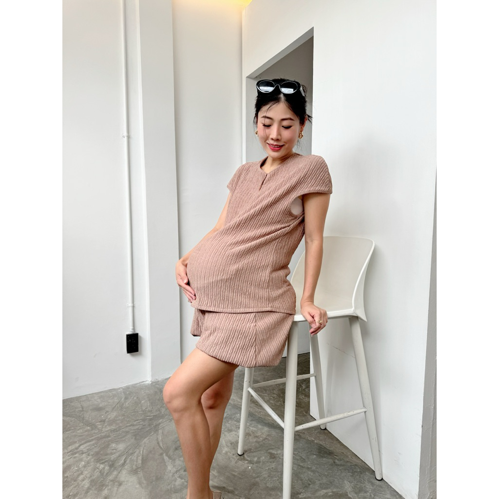 |มาใหม่|Minirin เซตเสื้อคลุมท้อง + กางเกงคลุมท้องทรงบอลลูน (ให้นมได้) M63 Nami balloon set
