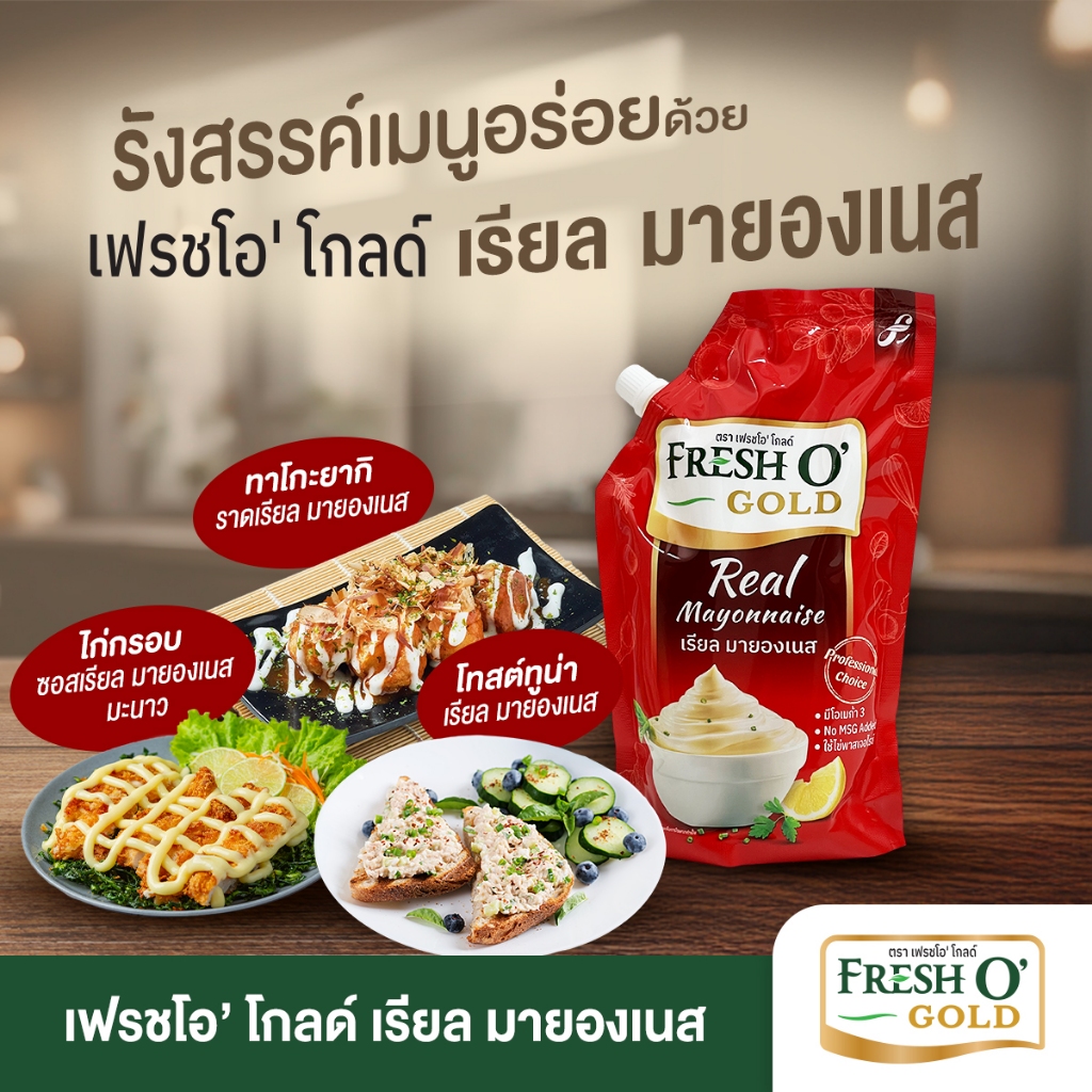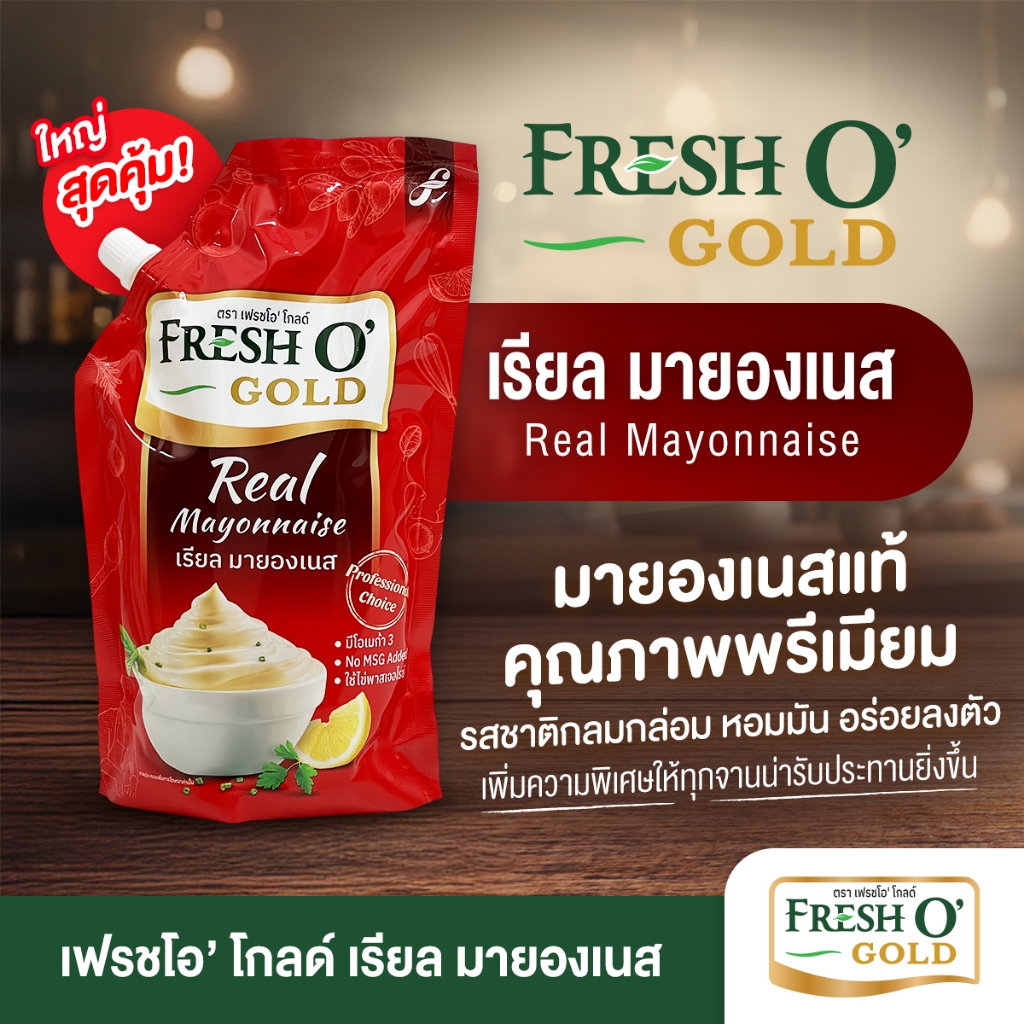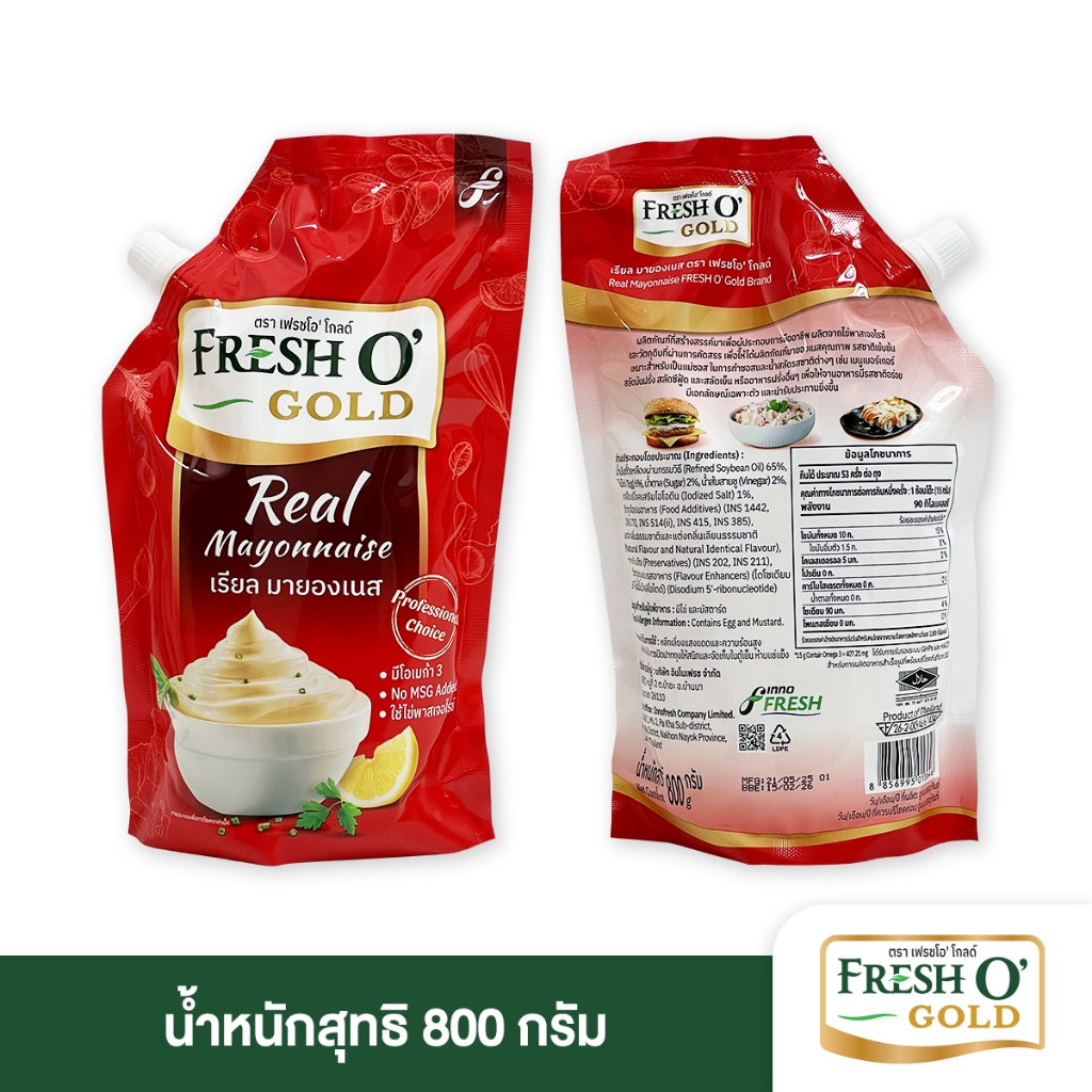 FRESH O' Gold เรียลมายองเนส Real Mayonnaise ใช้น้ำมันถั่วเหลือง ไข่สด คุณภาพดี รสกลมกล่อมหอมมัน 800g