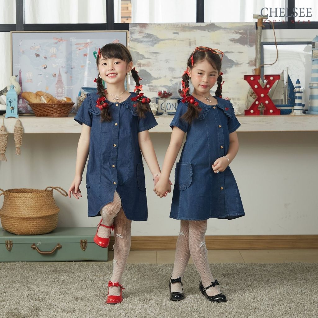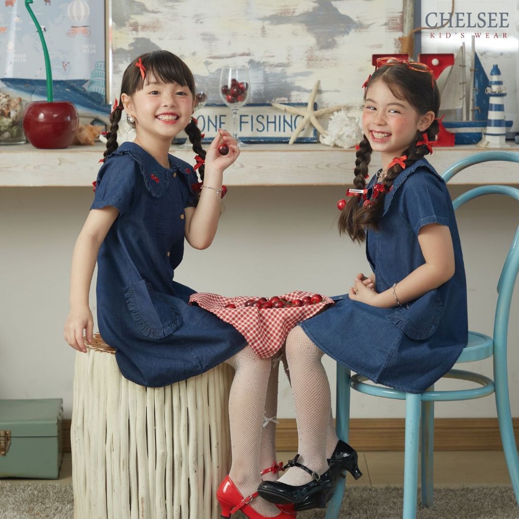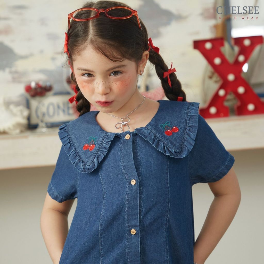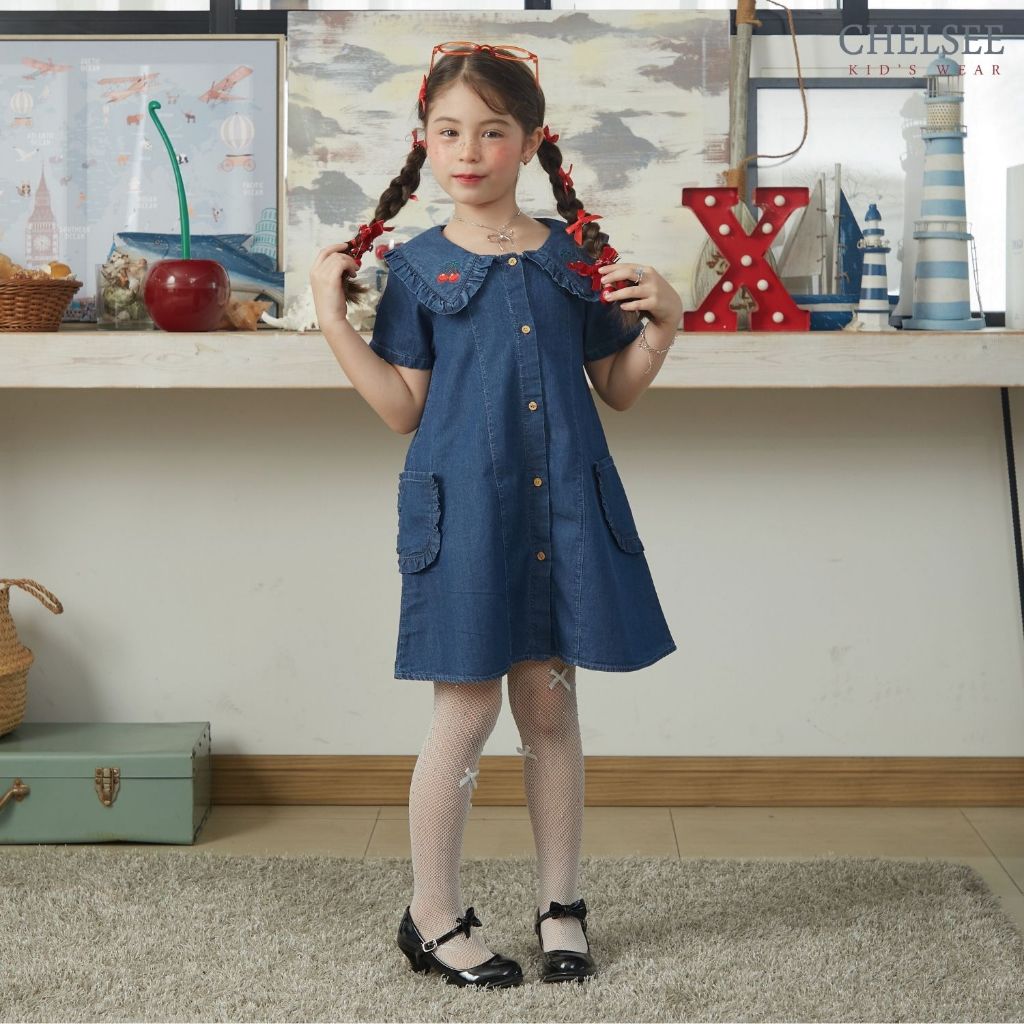Chelsee เดรสยีนส์ ปกระบาย มีปักเชอร์รี่หวานๆ ผ้ายีนส์ฟอกนิ่ม ไม่หนา น่ารักมาก เด็กผู้หญิง อายุ 1.5-10 ปี รุ่น 238198