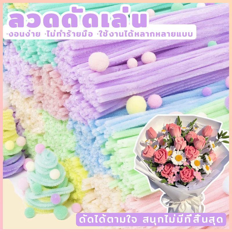 ลวดกำมะหยี่ขนฟูสุดๆ สีพาสเทล มีหลายสี นุ่ม ดัดง่าย ไม่หลุดร่วง ทำงานฝีมือ งานฝีมือ ประดิษฐดอกไม้