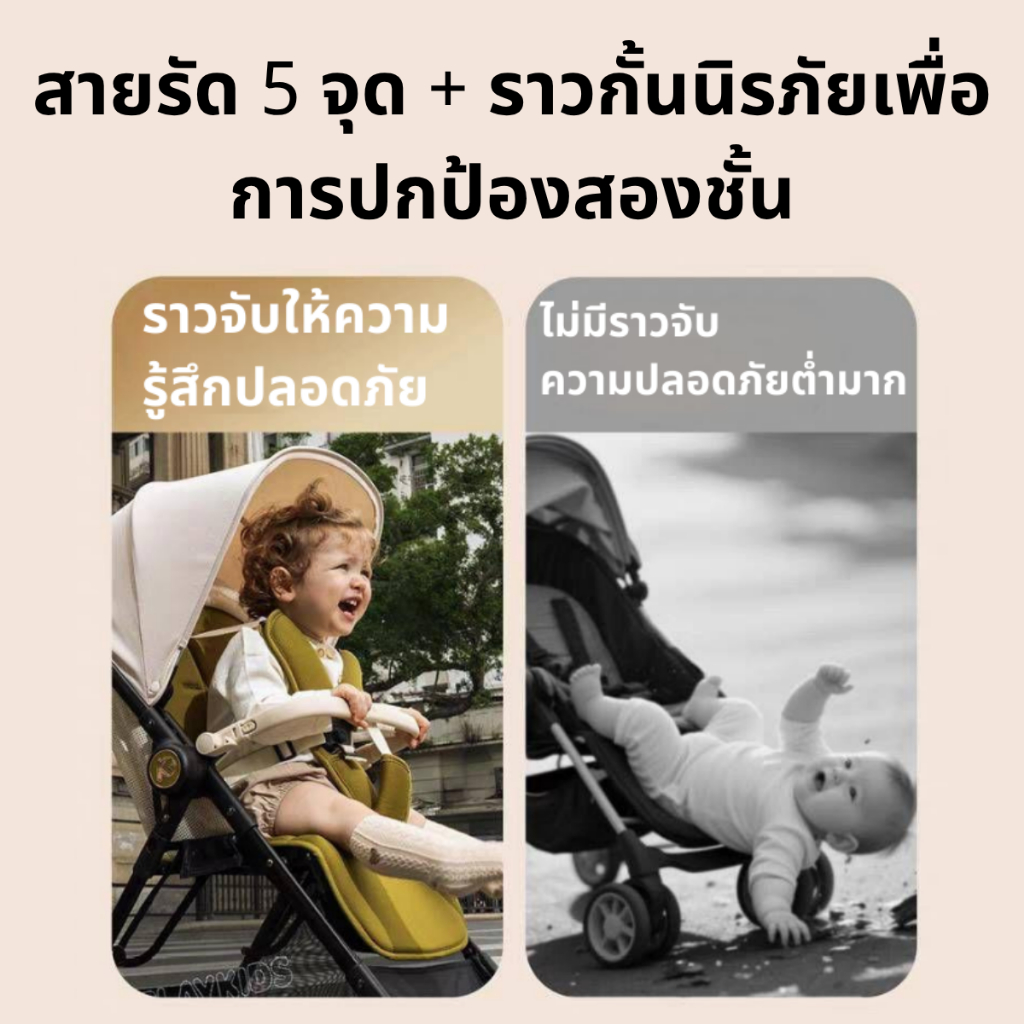 YUUMI รถเข็นเด็ก รถเข็นเด็กพับได้ รถเด็ก โช๊คอัพ ล้อมีเบรค พกพาสะดวก สายรัดแบบ 5 จุด เข็นหน้า-หลังได้ รถเข็นเด็กเอนกประส