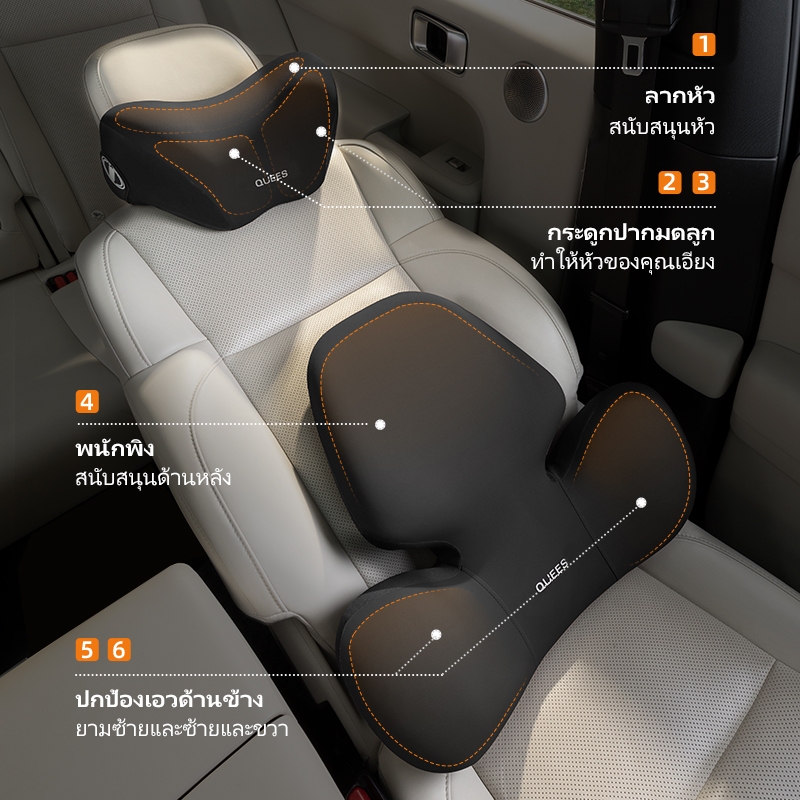 QUEES หมอนรองคอในรถ ที่รองหลังเบาะรถยนต์ หมอนรองคอ เมมโมรี่โฟม ระบายอากาศได้ แก้ปวดหลัง