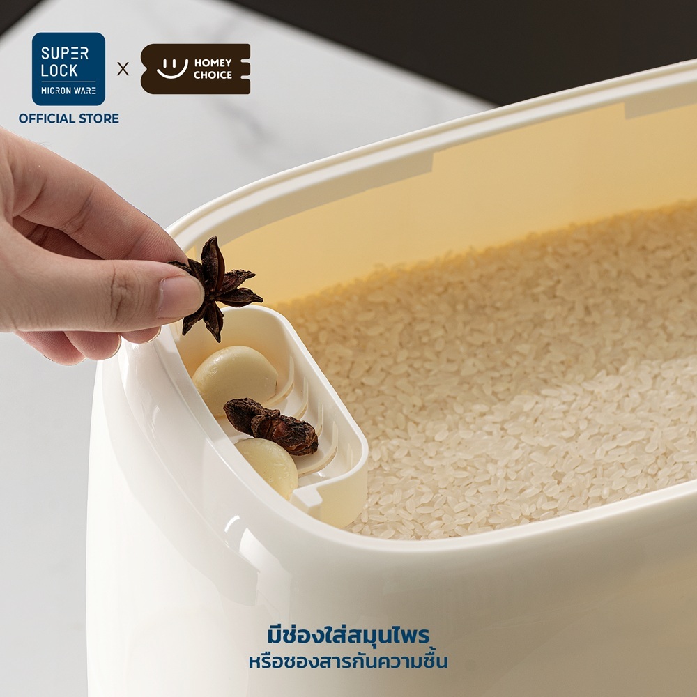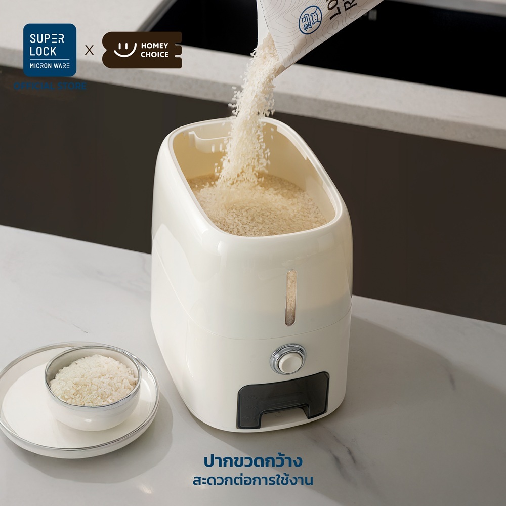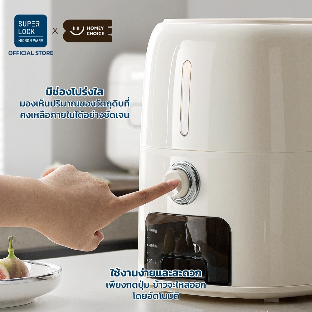 HomeyChoice กล่องเก็บข้าวสาร ถังข้าวสาร กดปุ่มข้าว Food Grade ปลอดภัย เก็บกลิ่นได้ดี ขนาด 5kg 10kg