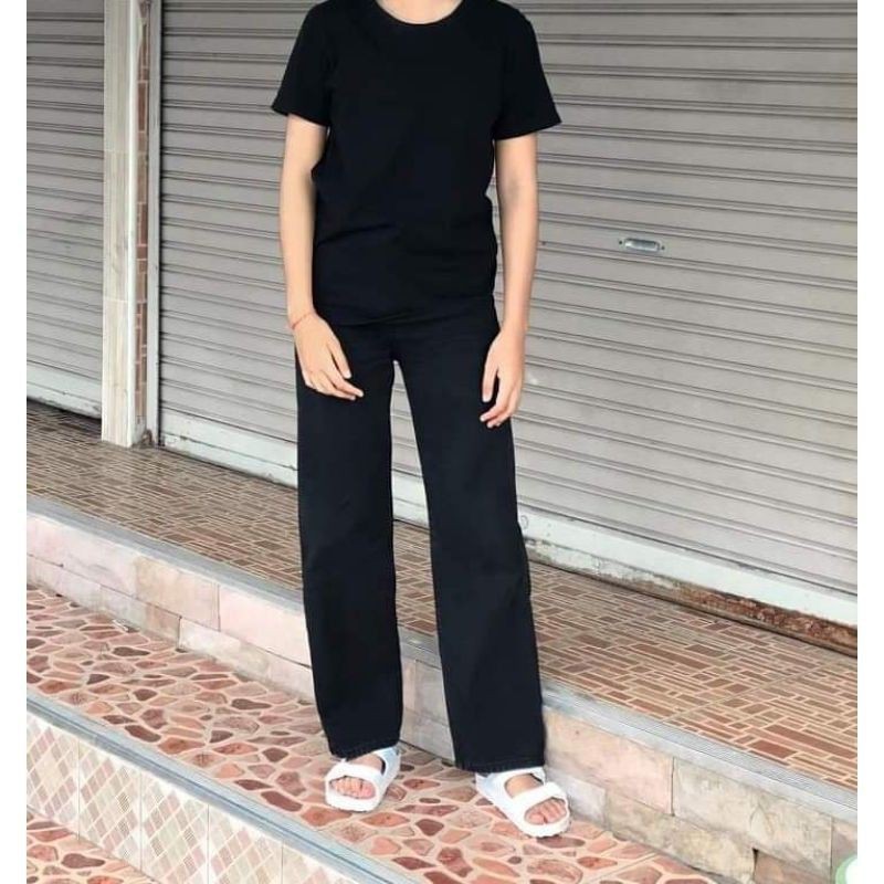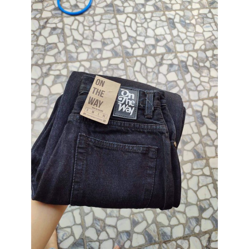 [พร้อมส่ง]👖กางเกงยีนส์รุ่นON THE WAYขากระบอกดำสไตล์วินเทจ เอวสูง ใส่ได้ทั้งชายและหญิง ผ้าดี สีไม่ตก ยีนส์ดำ👖