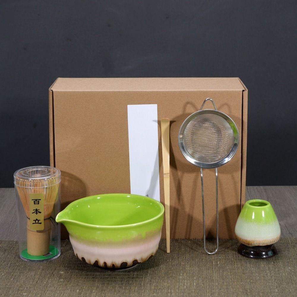 จัดส่งจากประเทศไทยBELLZO 5 ชิ้น Matcha Whisk Set, with Spout Food Grade Japanese Matcha Tea Set, แบบดั้งเดิมนํากลับมาใช้ใหม่ไม้ไผ่เซรามิค Safe Match Bowl Stir