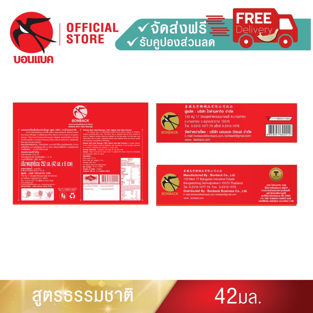 (ธรรมชาติ 42มล. 6 แพค) บอนแบค ชุดเครื่องดื่มรังนกสำเร็จรูป สูตร 100% จากถ้ำธรรมชาติ Bonback ของขวัญ ปีใหม่