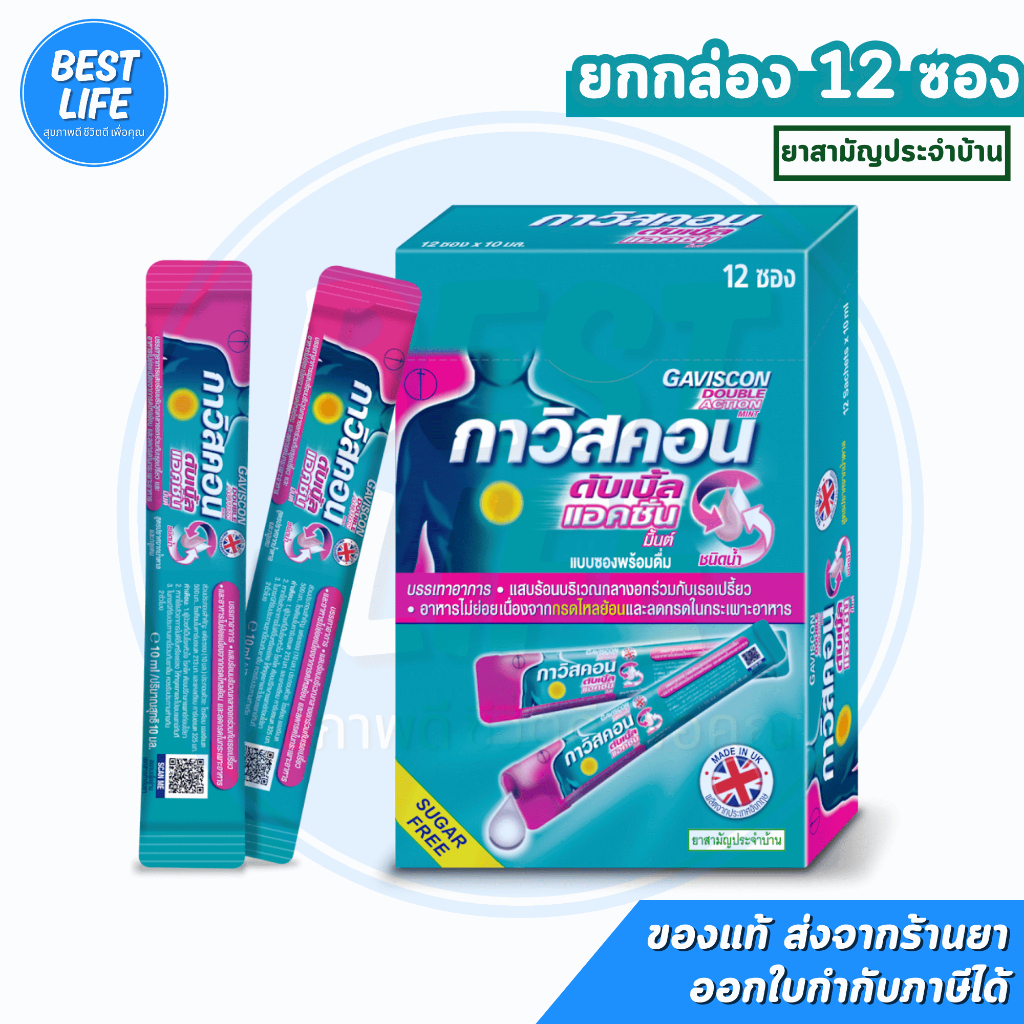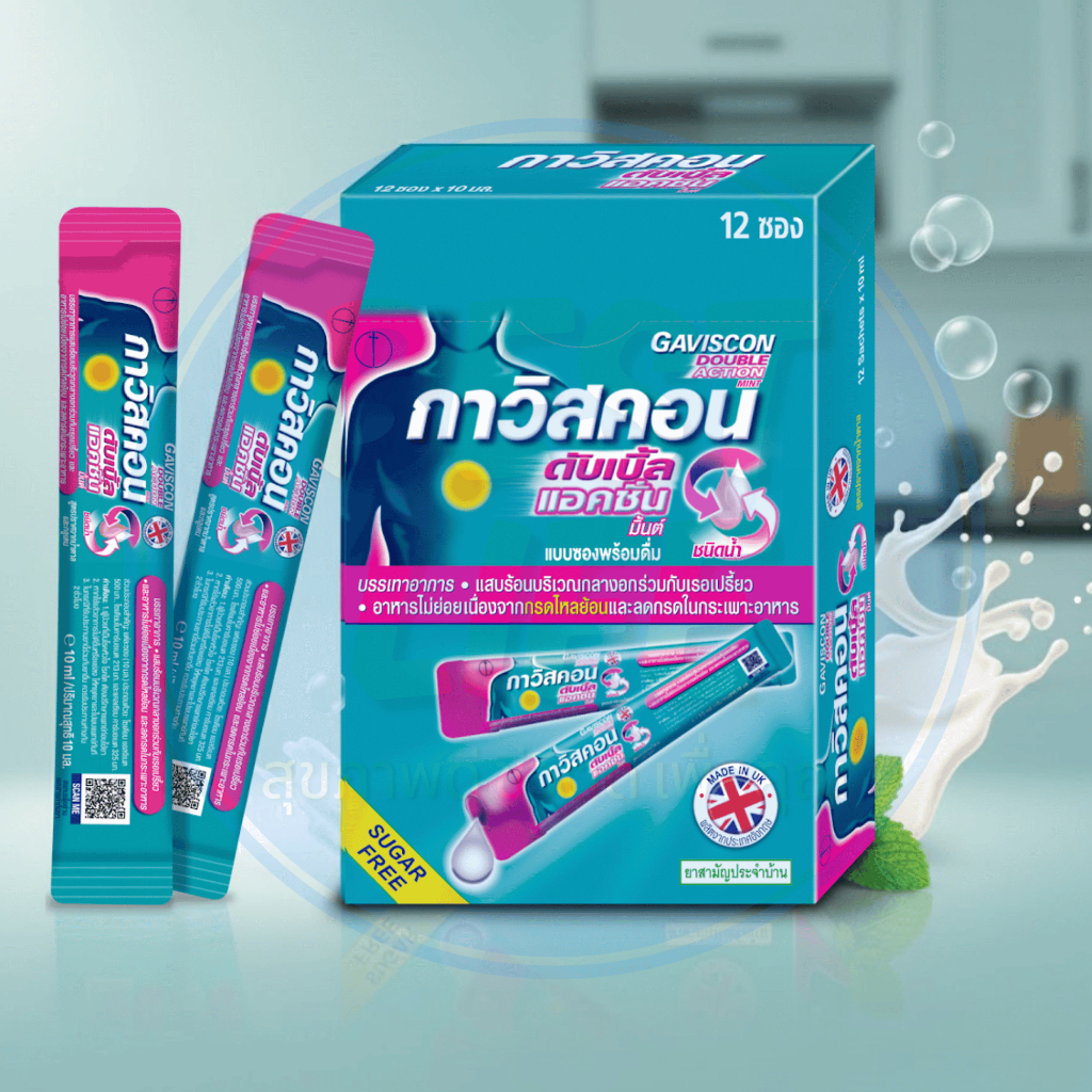 [ยกกล่อง 12 ซอง] Gaviscon Double Action Mint Flavour 10ml. กาวิสคอน รสมินต์