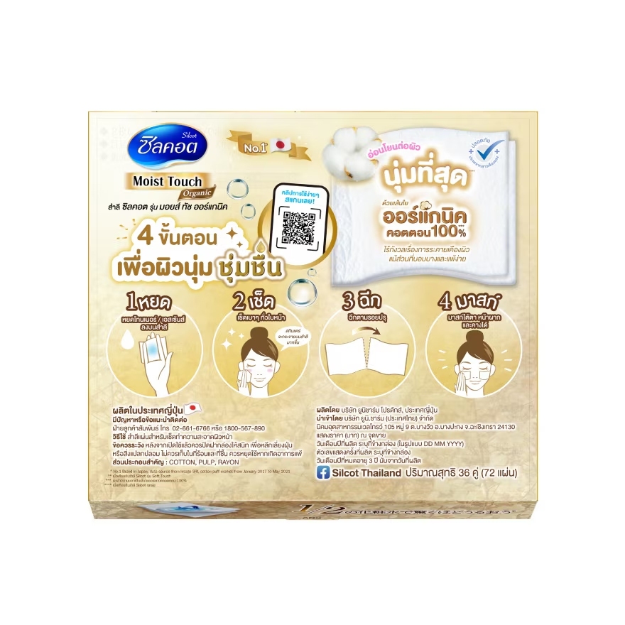 Silcot Moist Touch Organic ซิลคอต มอยส์ ทัช ออร์แกนิค สำลีแผ่น 72 แผ่น