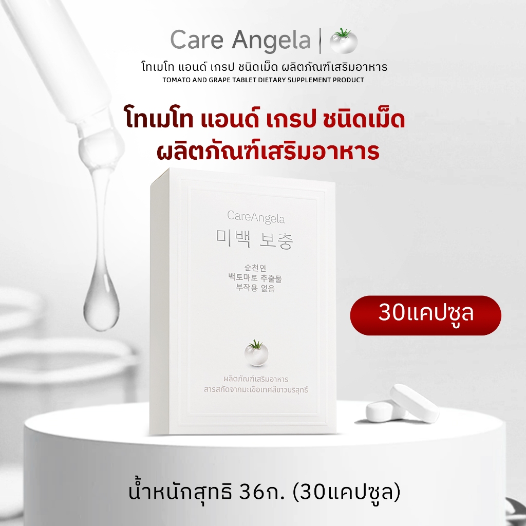 careangela วิตามิน พลัส แอล-กลูตาไธโอน ผสมมะเขือเทศ ผลิตภัณฑ์เสริมอาหาร (ตรา แคร์แอจเจลล่า)30แคปซูล