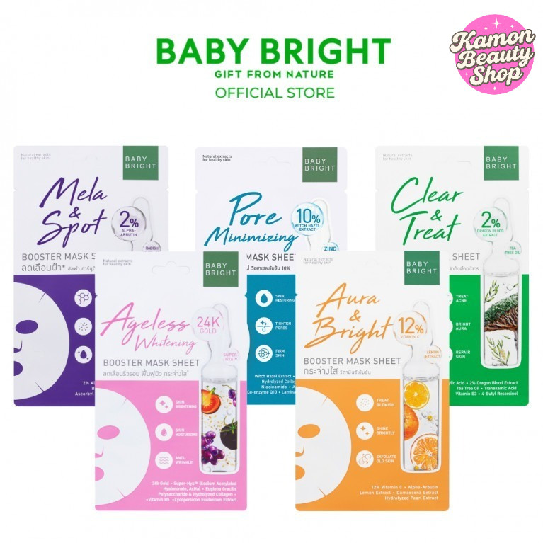 (6แผ่น/กล่อง) Baby Bright Booster Mask Sheet มาสก์หน้า เบบี้ไบร์ท แผ่นมาสก์บำรุงผิว สูตรผิวชุ่มชื้น กระจ่างใส คุมมัน