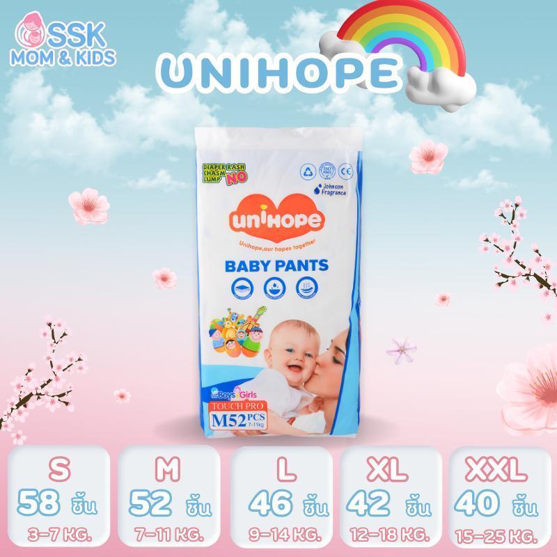 ผ้าอ้อมเด็ก Unihope กลิ่นหอมแป้งเด็ก S-2XL นุ่ม หอม ใส่สบาย โปรขายดี แม่ไว้ใจ เด็กใช้แล้วฟิน