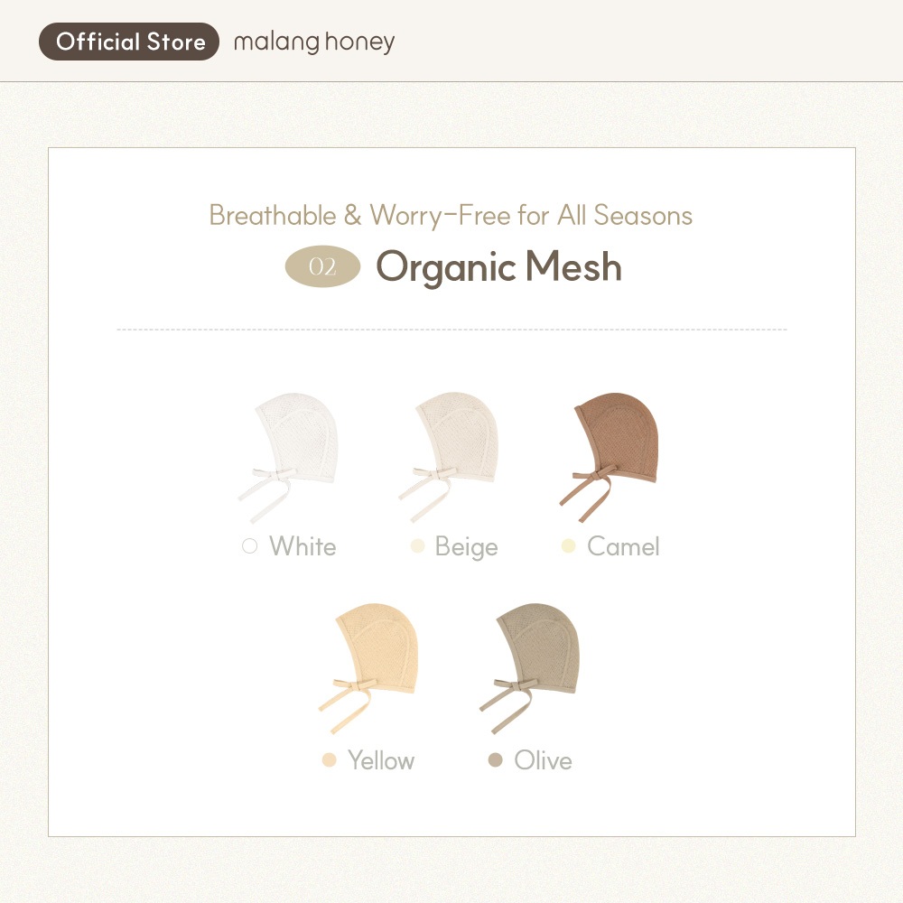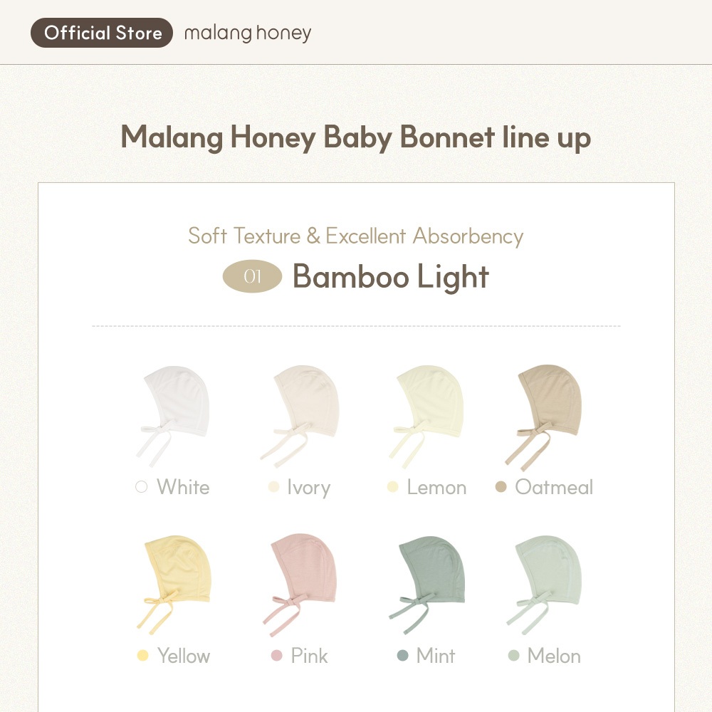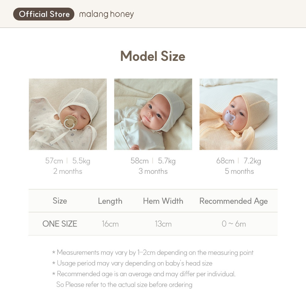 [Malang Honey] หมวกบอนเน็ตเด็กเล็ก Bonnet ผูกเชือกได้ ผ้าระบายอากาศ หมวกเด็กแรกเกิด สำหรับใส่กลับจากโรงพยาบาล ช่วยรักษาอุณหภูมิร่างกาย