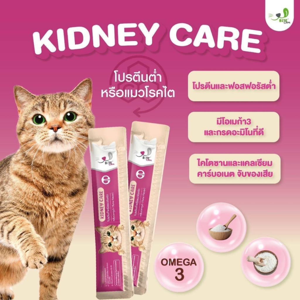 Bite Care Healthy cat Treats low Protein ไบท์แคร์ ขนมแมวเลีย สูตร Kidney Care โปรตีนต่ำและถนอมไต ขนาด12กรัมx30ซอง