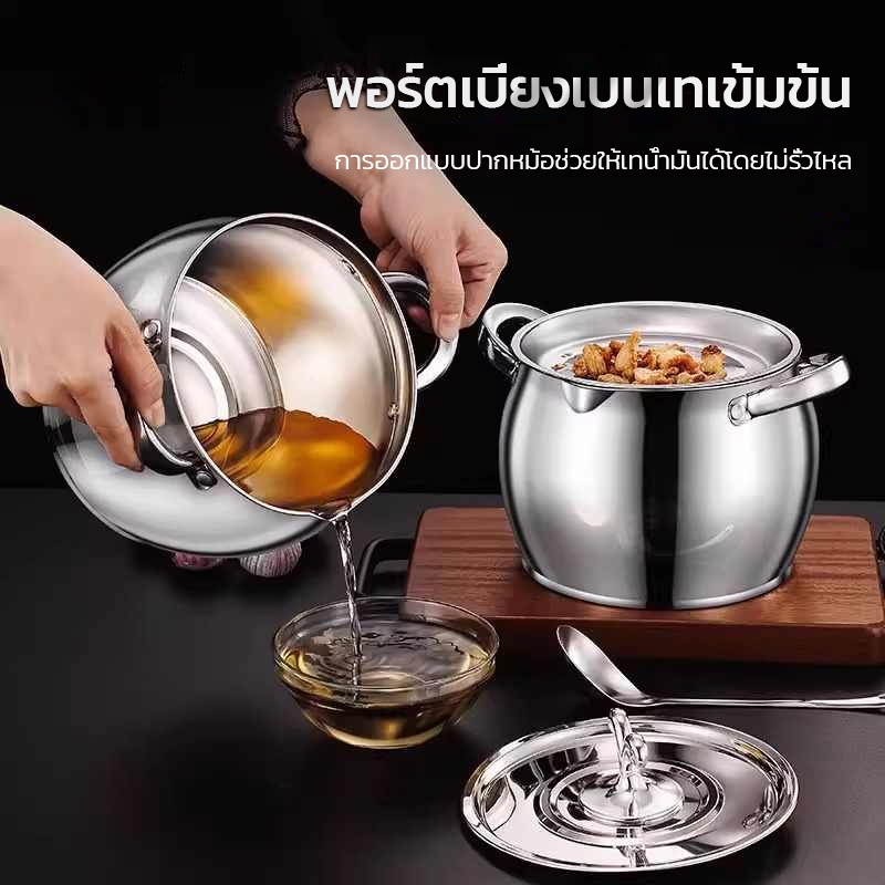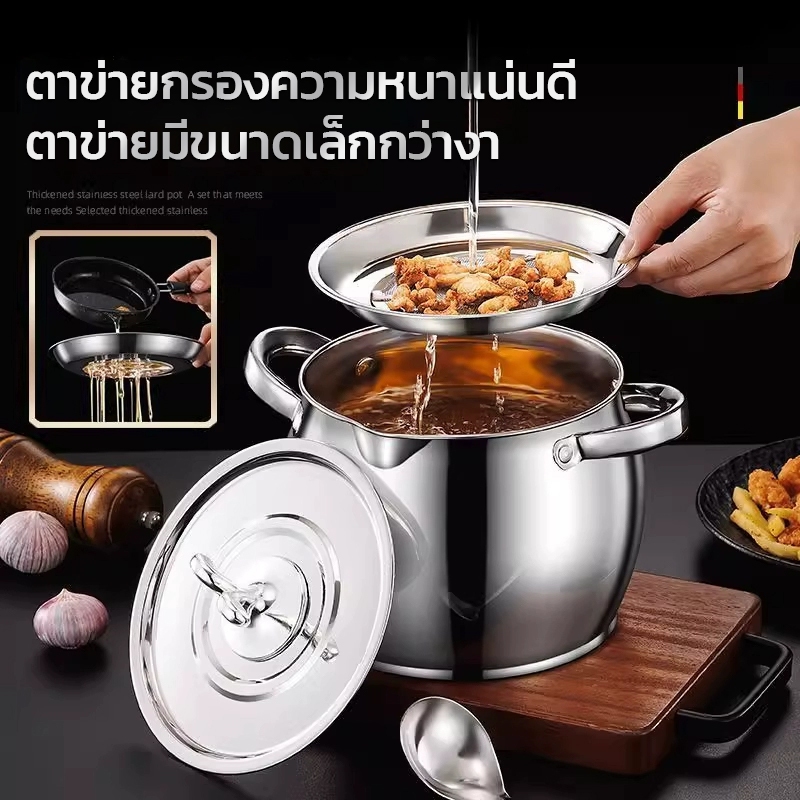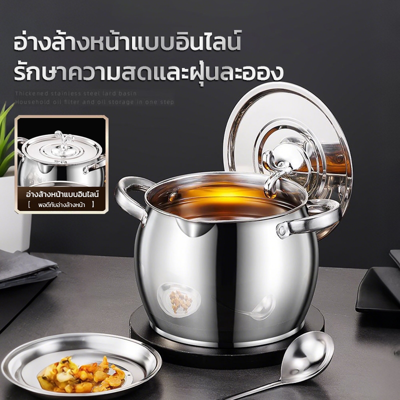 หม้อกรองน้ำมันพืช กระปุกน้ำมันสแตนเลส โถใส่น้ำมันสแตนเลส ภาชนะเก็บจาระบี เพิ่มความหนา มีช้อนแถมให้ พร้อมฝาปิด