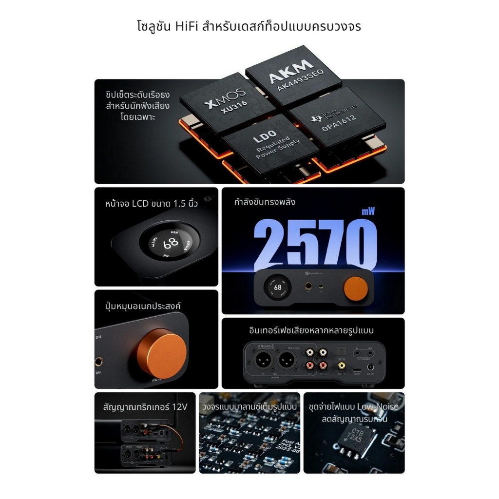 [ประกันศูนย์ไทย] Fosi Audio ZH3 DAC/AMP ตั้งโต๊ะ สำหรับระบบเสียงเดสก์ท็อป รองรับหูฟังและลำโพงแอคทีฟ