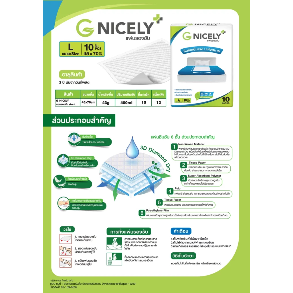 [12 แพ็ค] G Nicely Absorbent Pad จี ไนซ์ลี แผ่นรองซับ [10 แผ่น][Size L] แผ่นรอง แผ่นซับปัสสาวะ