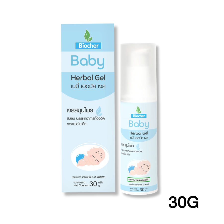 Biocher Baby Herbal Gel เบบี้ เฮอบัลเจล 30G ช่วยขับลม บรรเทาอาการท้องอืด ท้องเฟ้อ มหาหิงค์ เบบี้เจล BabyGel มหาหิงค์เจล