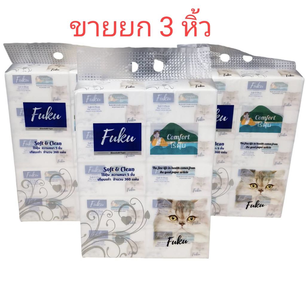 ฟุกุ ทิชชู่ฟุกุ Fuku ทิชชู่ไร้ฝุ่น หนา5ชั้น (ขายยก3แพ็คหิ้ว)3หิ้ว