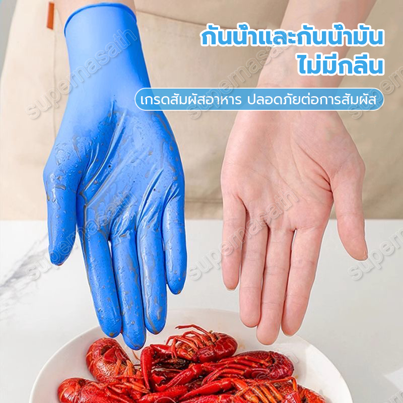 ถุงมือไนไตรล์แบบใช้แล้วทิ้ง 1 ชิ้น 50/100 / กล่อง อเนกประสงค์ เข้าถึงอาหารได้ ถุงมือไนลอนเกรดอาหาร
