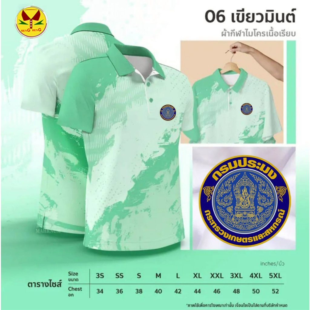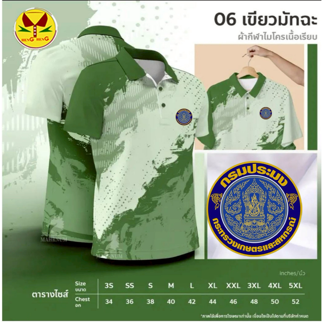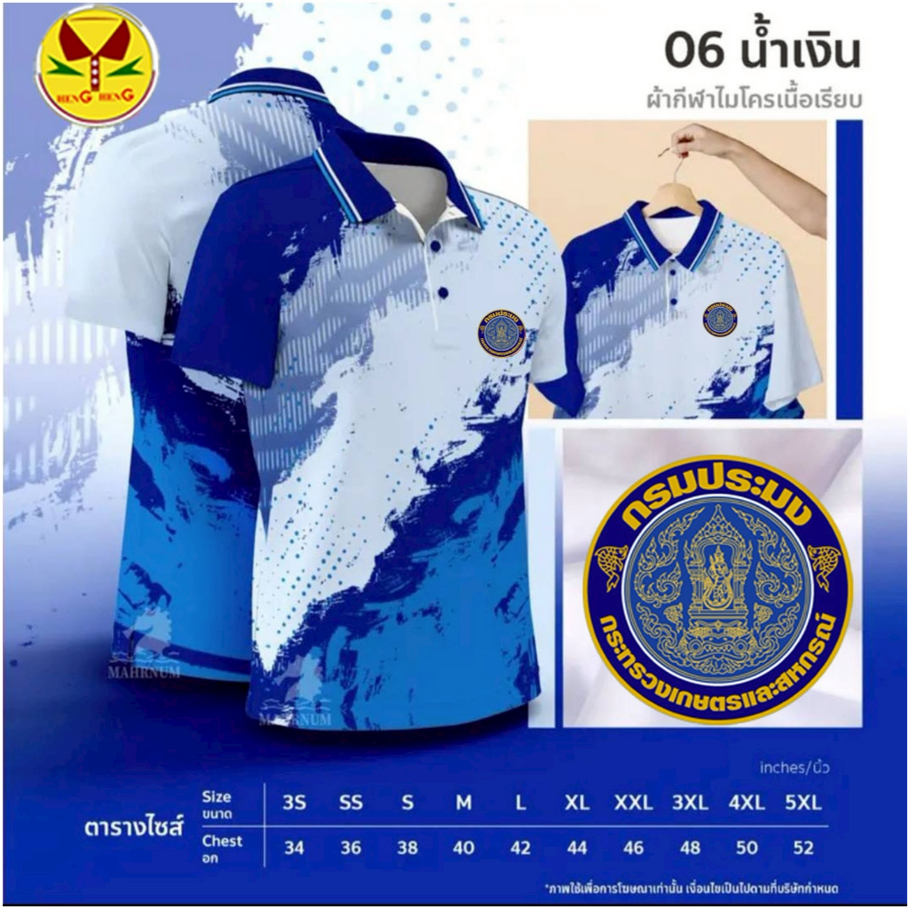 เสื้อโปโลลาย 06 กรมประมง ผ้าไมโครกีฬา ใส่สบาย ไม่ต้องรีด เสื้อโปโลลาย 06 (กรมประมง)
