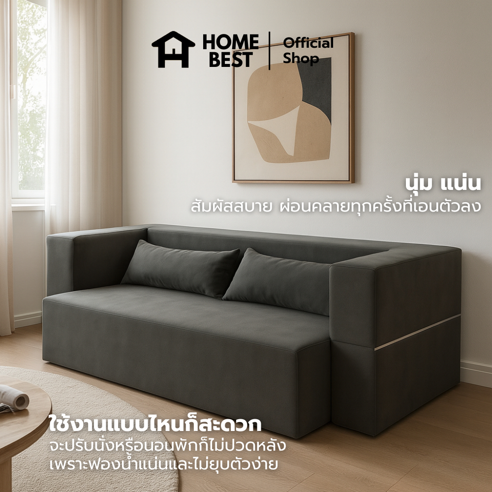 Home Best โซฟาอัดสูญญากาศ 2 in 1 รุ่น NAPSO โซฟาและเตียงนอนในตัว พื้นที่ใช้สอยคุ้มค่า พร้อมหมอนอิงฟรี 2 ใบ