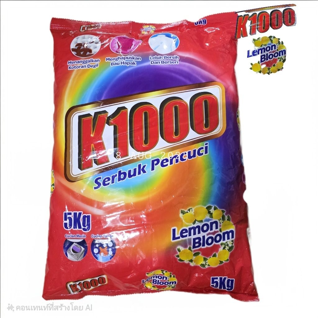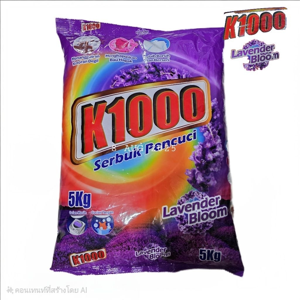 1ถุง ผงซักฟอก k1000 กลิ่นหอมสดชื่น ขนาด5kg มี3กลิ่น
