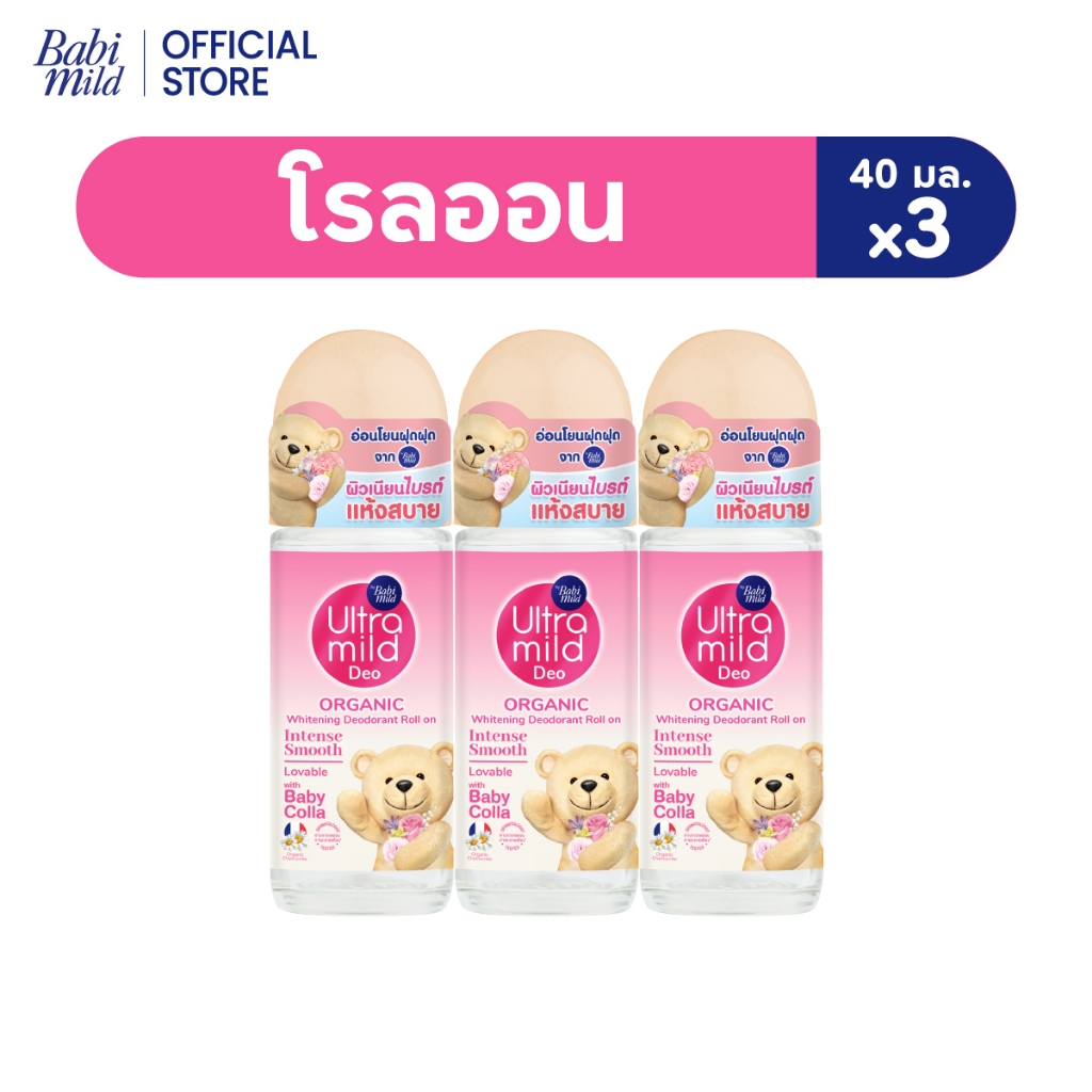 [มี3แพ็คให้เลือก] เบบี้มายด์ อัลตร้ามายด์ ไวท์เทนนิ่ง โรลออน อินเทนซ์สมูท ผิวแพ้ง่าย 40มล/ Ultra Mild Intense Smooth