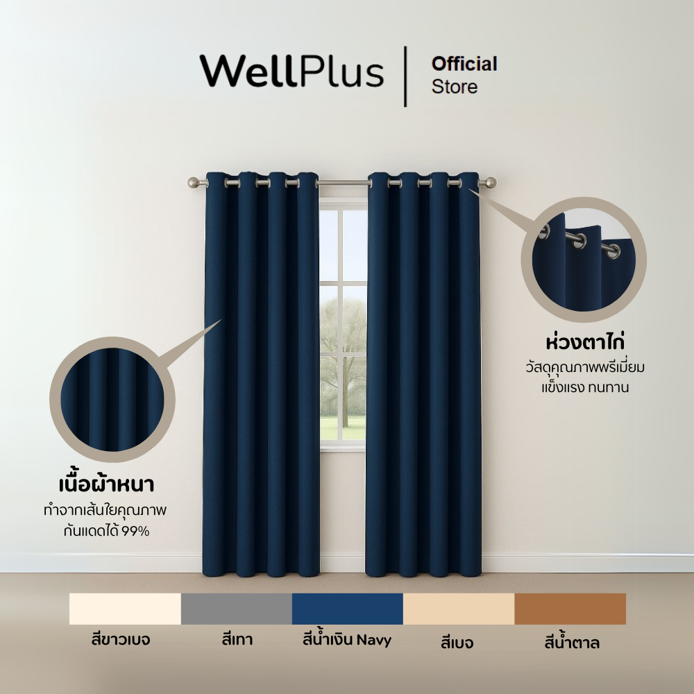 Wellplus ผ้าม่านตาไก่ช่วยกันแสงแดดและรังสี UV ได้มากถึง 99% ลดอุณหภูมิห้องทำให้ไม่ร้อน ช่วยให้ห้องเย็นขึ้น