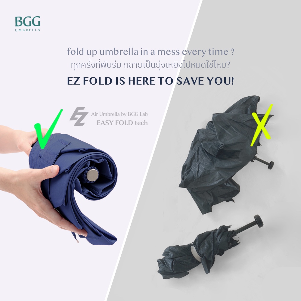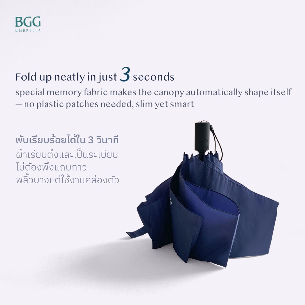 BGG Laboratory EZ Fold Lightweight Auto Umbrella QUIK FOLD ร่มอัตโนมัติ น้ำหนักเบาเป็นพิเศษ การเก็บร่มรวดเร็ว (AT0069)