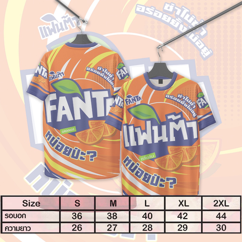 เสื้อคอกลมกีฬาลายแฟนต้าส้มใส่สบายระบายอากาศผ้าไมโคร