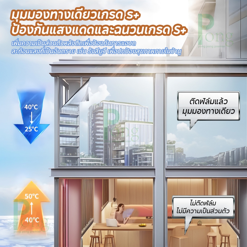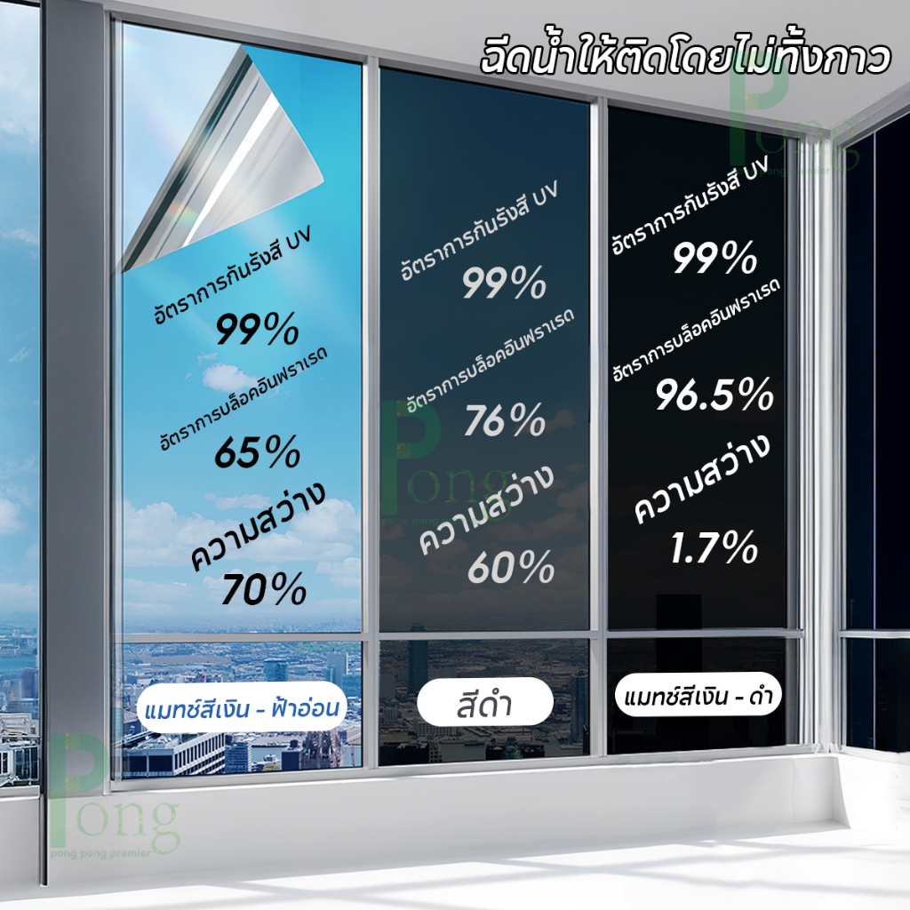 (ยาว 2เมตร)ฟิล์มกรองแสง กันความร้อน กันรังสีUV99% มองเห็นด้านเดียว ฟิล์มติดกระจก ฟิล์มปรอท ฟิล์มอาคาร Window Film