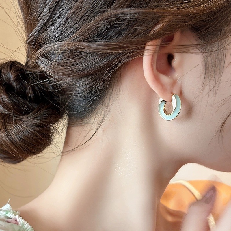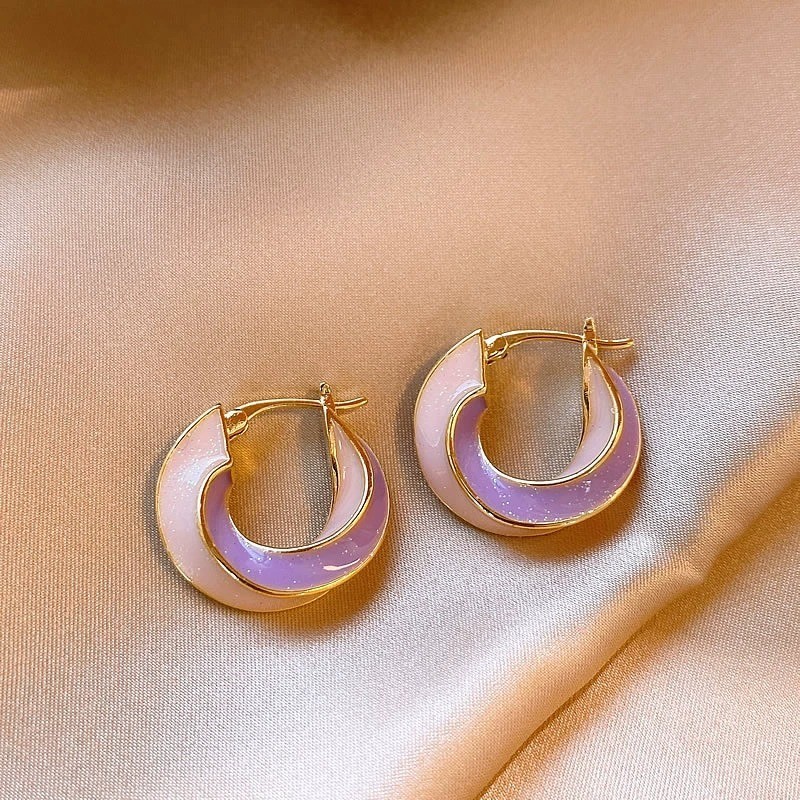 [GG] ต่างหูห่วงเคลือบหยด ต่างหูไขลานสีม่วง อุปกรณ์เสริมสุภาพสตรี เลียนแบบภูมิแพ้