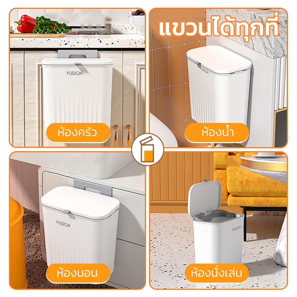 Naju ถังขยะ ถังขยะอเนกประสงค์ 9L ถังขยะแบบแขวน แขวนเคาน์เตอร์ครัว ห้องน้ํา ห้องรับแขก ไม่ต้องเจาะรู
