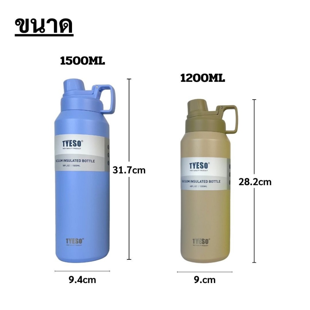 TYESO กระบอกเก็บความเย็น ใส่ได้ร้อน&เย็น SUS304 ขนาด 750ml 900ml 1200ml 1500ml เก็บอุณหภูมิได้ยาวนาน