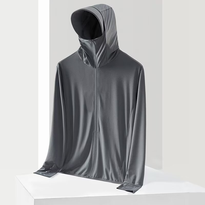 เสื้อกันแดดมีหมวก เสื้อกันแดด กันลม เสื้อกันแดดผ้าไหมน้ำแข็งแบบมีฮู๊ด ป้องกันแสงแดดUV บางเบาเย็นสบาย ( J15 )