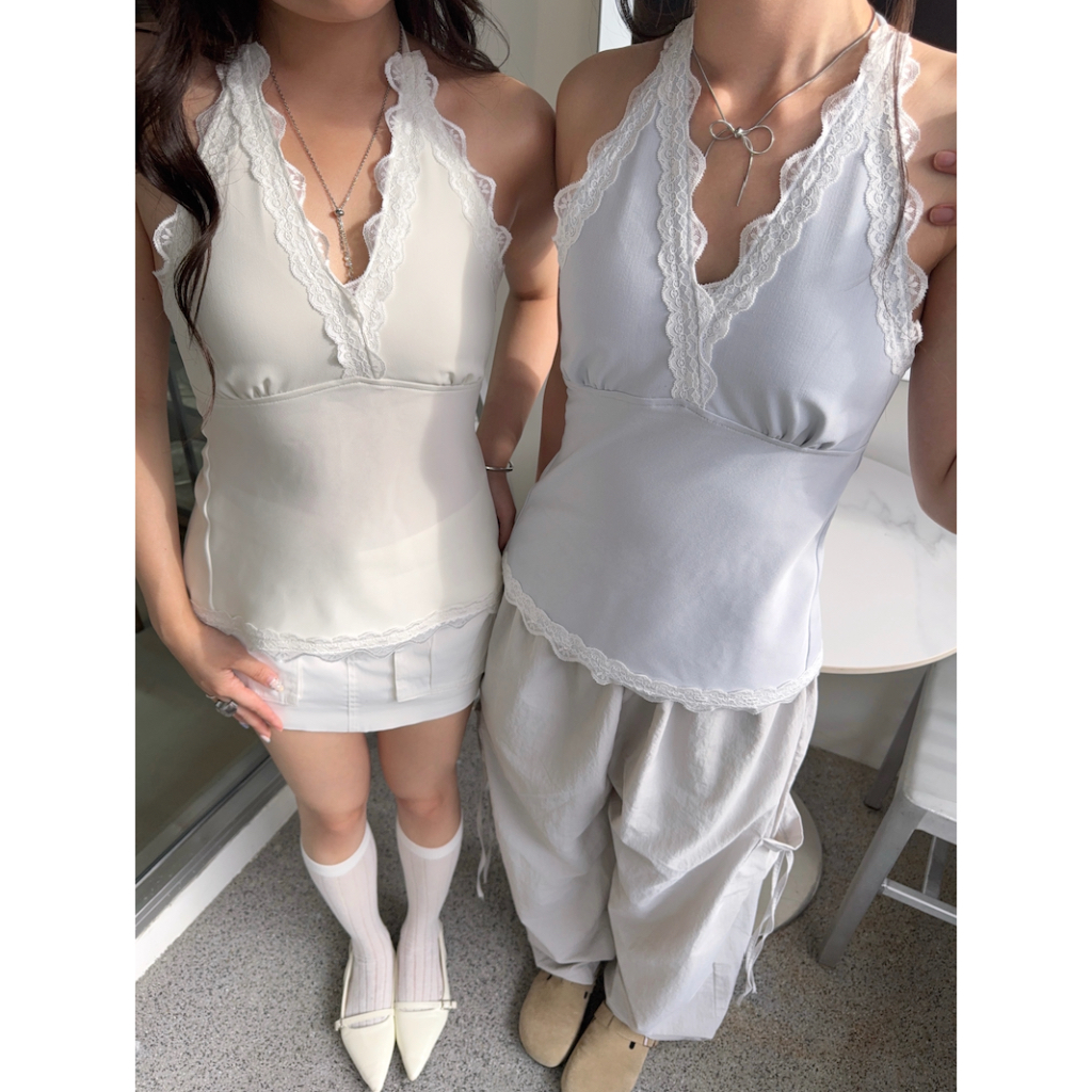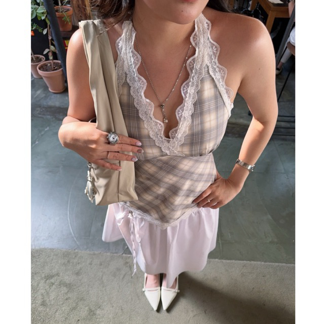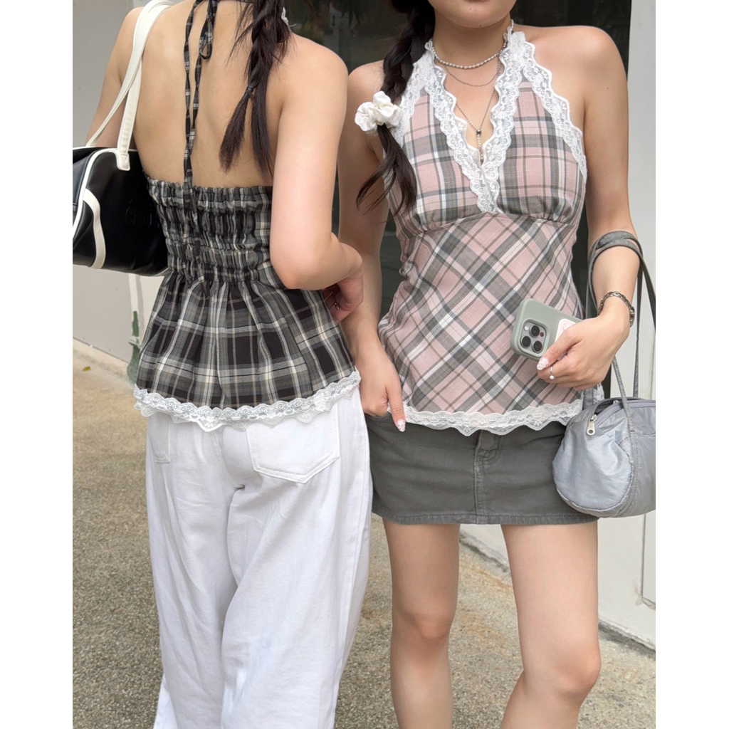 MELT.INMOMENTS Hunny Top เสื้อคล้องคอสก็อตแต่งลูกไม้ (พร้อมส่งทุกสี)