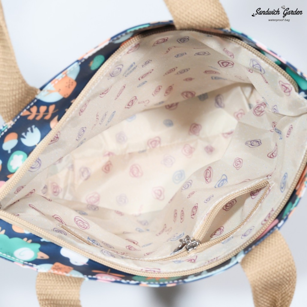 [ใหม่! ผ้าเคลือบกันน้ำแบบด้าน นิ่มแต่เป็นทรง] กระเป๋าถือแฟชั่น สายกระเป๋าผ้าลูกฟูก มีซิปตรงกลาง แบรนด์ Sandwich Garden