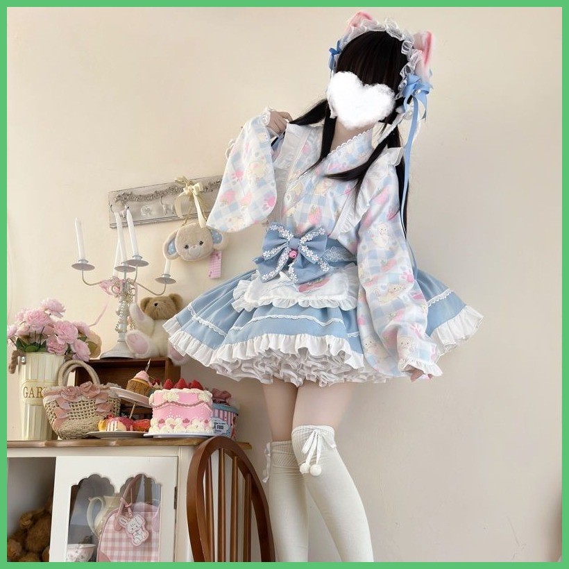ชุดเดรสโลลิต้า 2025 สไตล์ญี่ปุ่น แบบชุดเมด แขนสามส่วน น่ารักอ่อนหวาน โบว์ ผ้าระบาย ผูก ดีไซน์พิเศษ