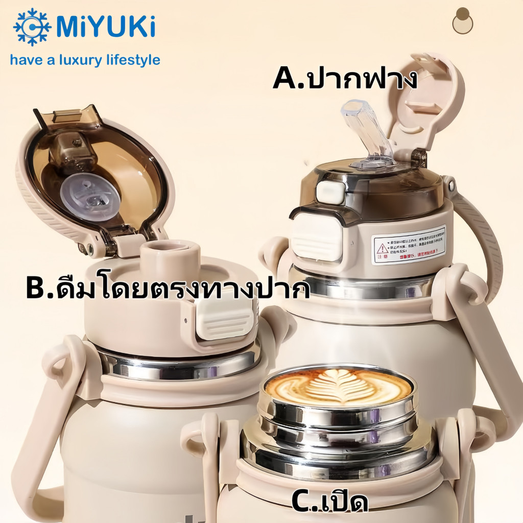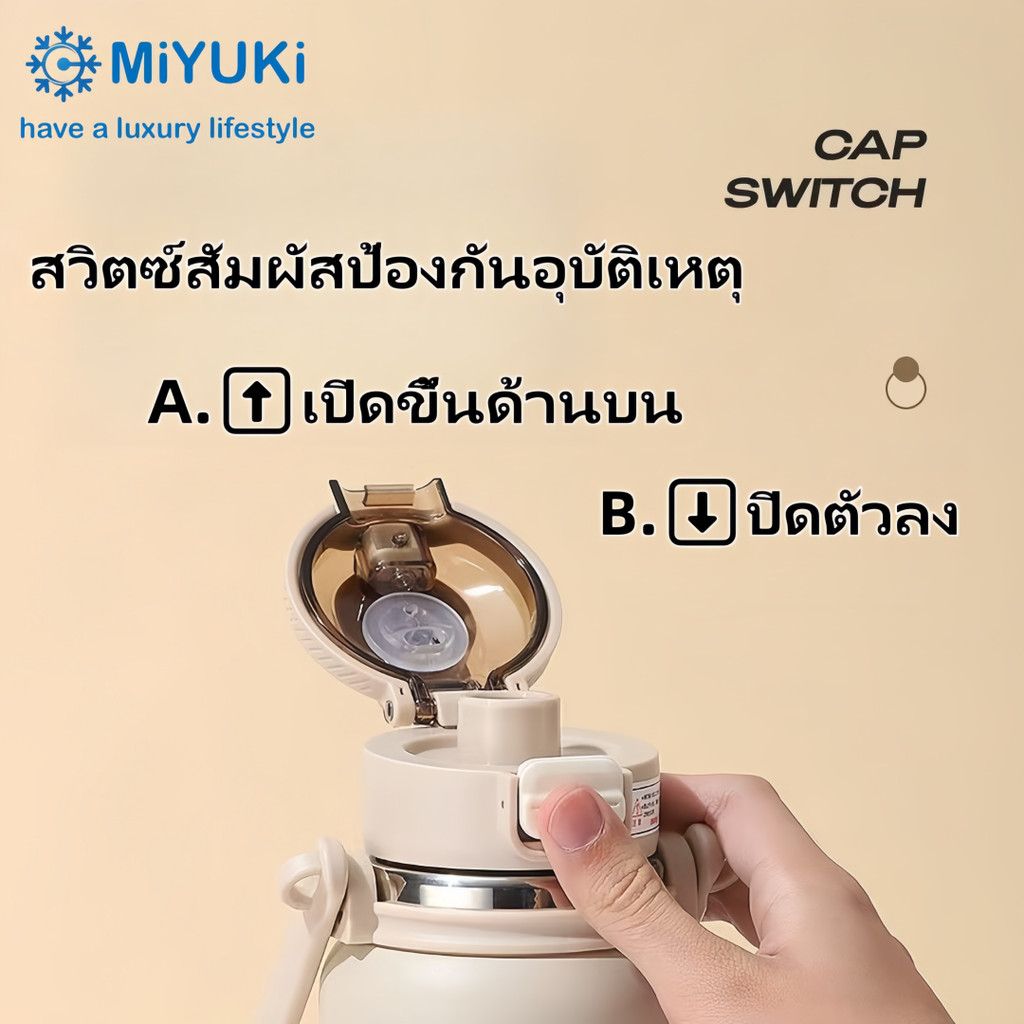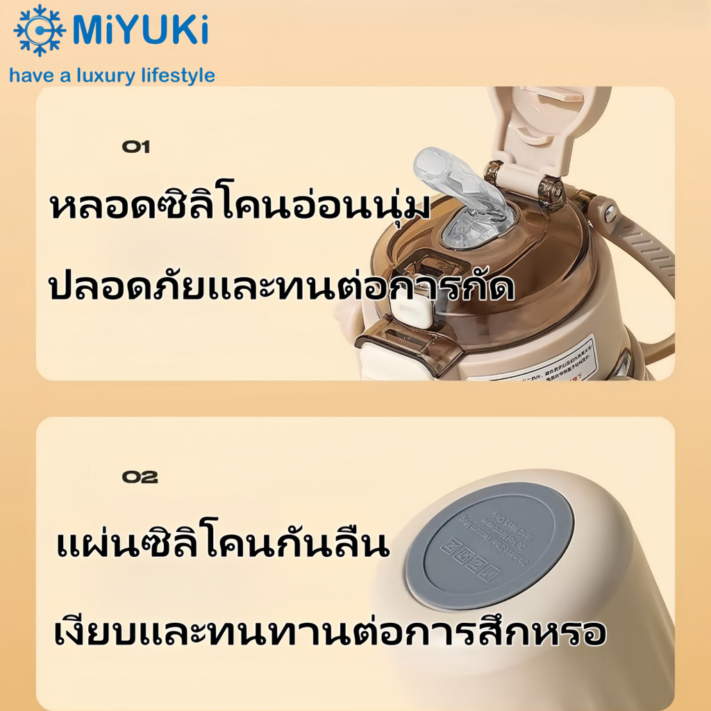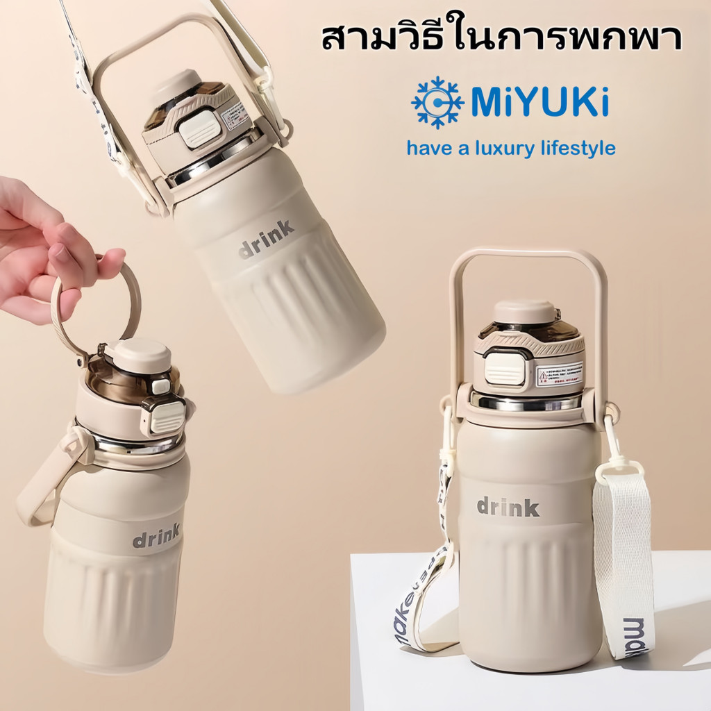 มิยูกิ ขวดน้ําพร้อมสายคล้อง ความจุถ้วย 800/1000มล รวมหลอดและยางรอง มีให้เลือก 4 สี ส่งจากกรุงเทพ