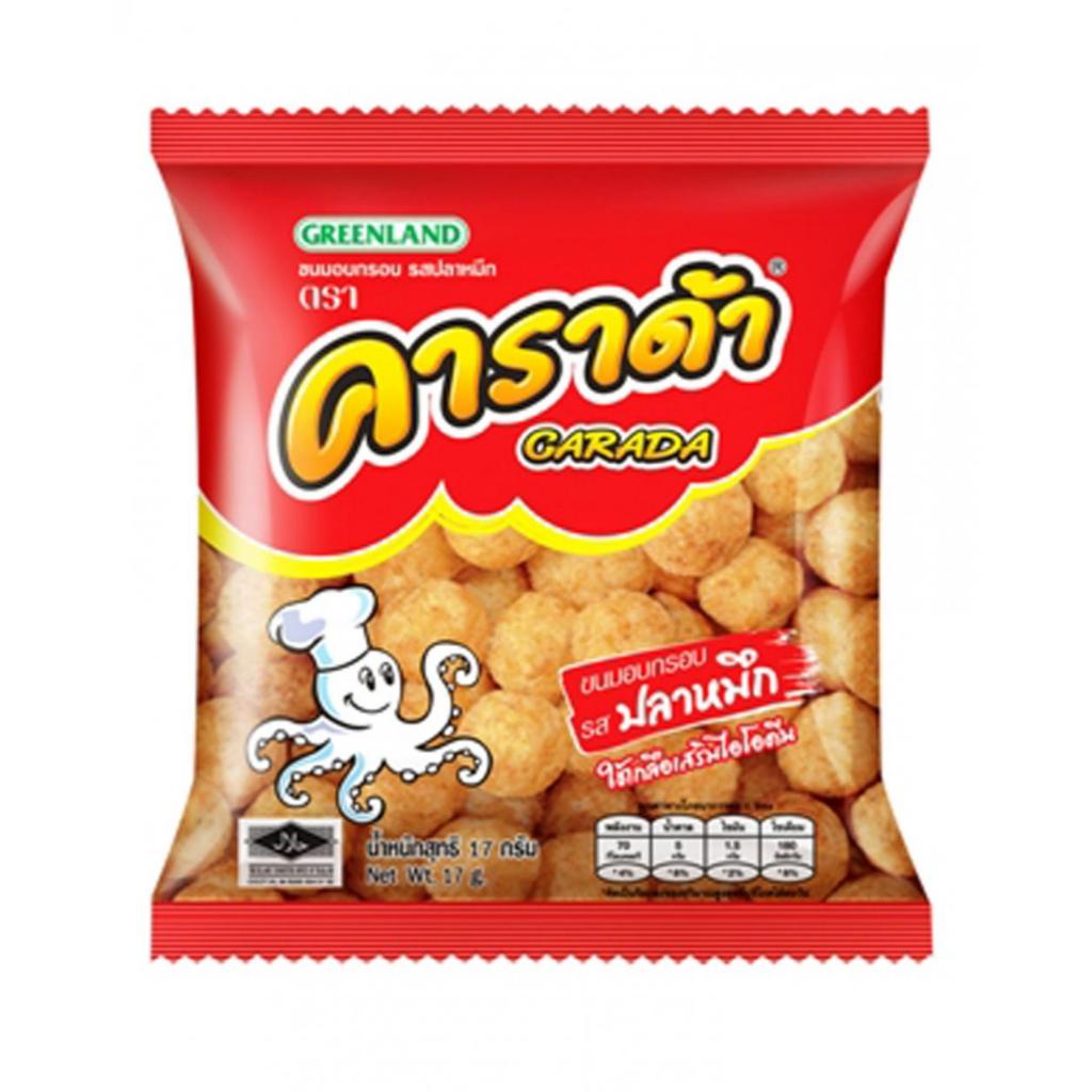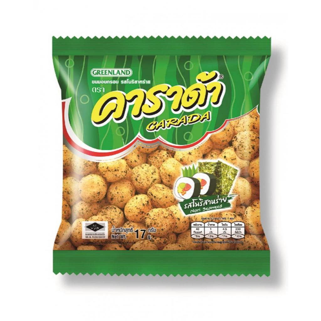 Carada คาราด้า ขนมอบกรอบ 3 รสชาติ รสปลาหมึก / รสโนริสาหร่าย และ สาหร่ายซาเซมิ ซองเล็ก (แพ็ค 12 ซอง)
