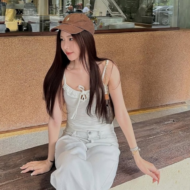 Sistersfabric - ivy Tank เสื้อกล้ามสายเดี่ยว แต่งระบายผูกโบว์ที่อก