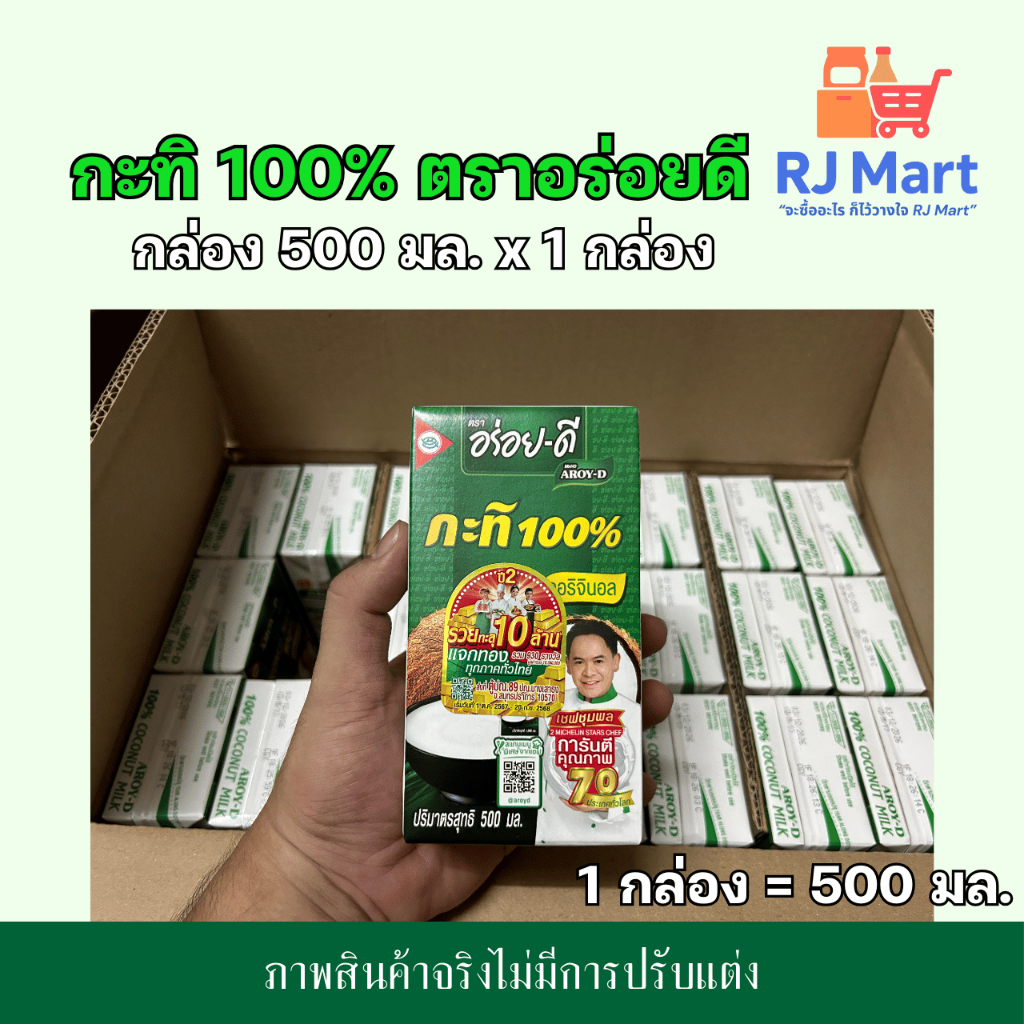 [1 กล่อง] กะทิ 100% ตราอร่อยดี (AROY-D) กล่องกลาง 500 มล. x 1 กล่อง