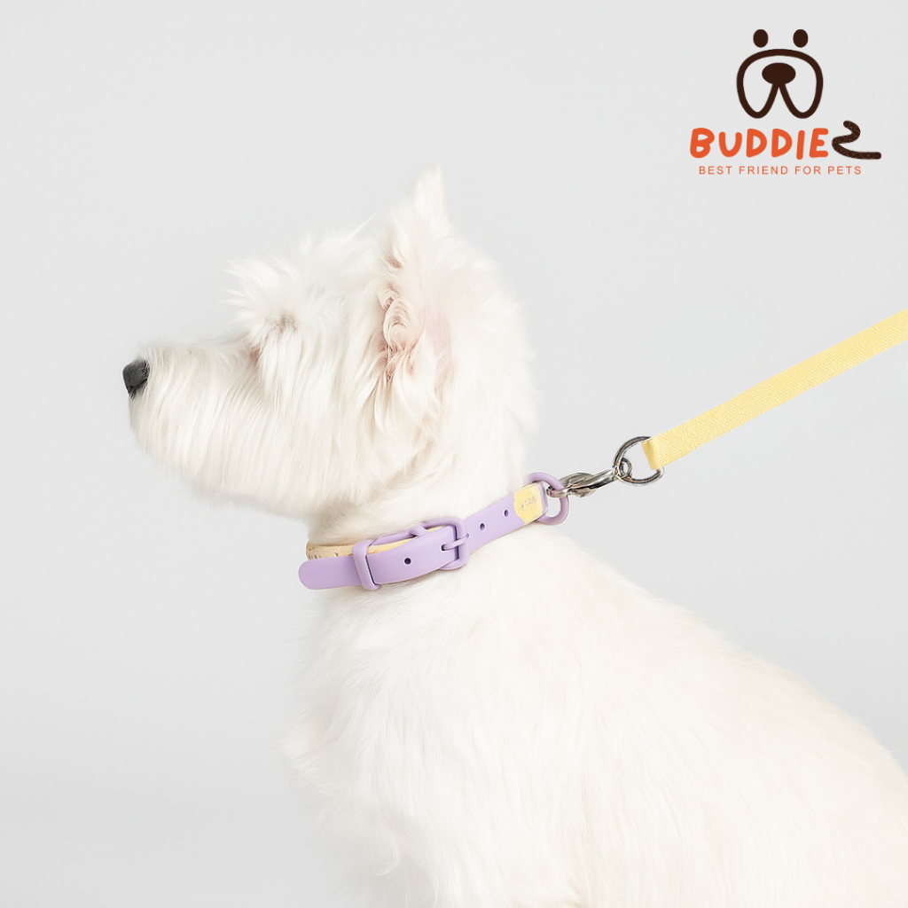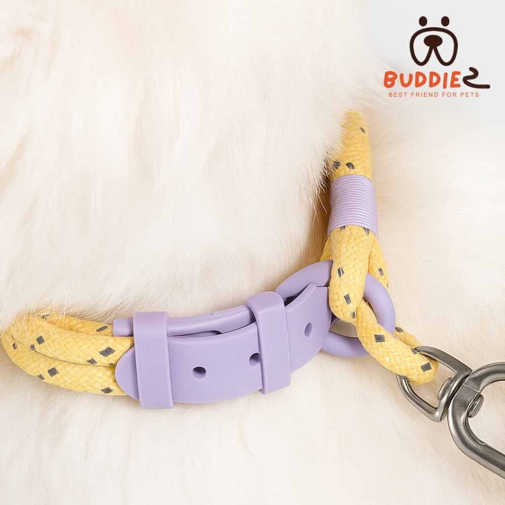 Buddiez ปลอกคอน้องหมา ปลอกคอน้องแมว สายถักไนลอน+ยาง PVC สีพาสเทลสุดน่ารัก