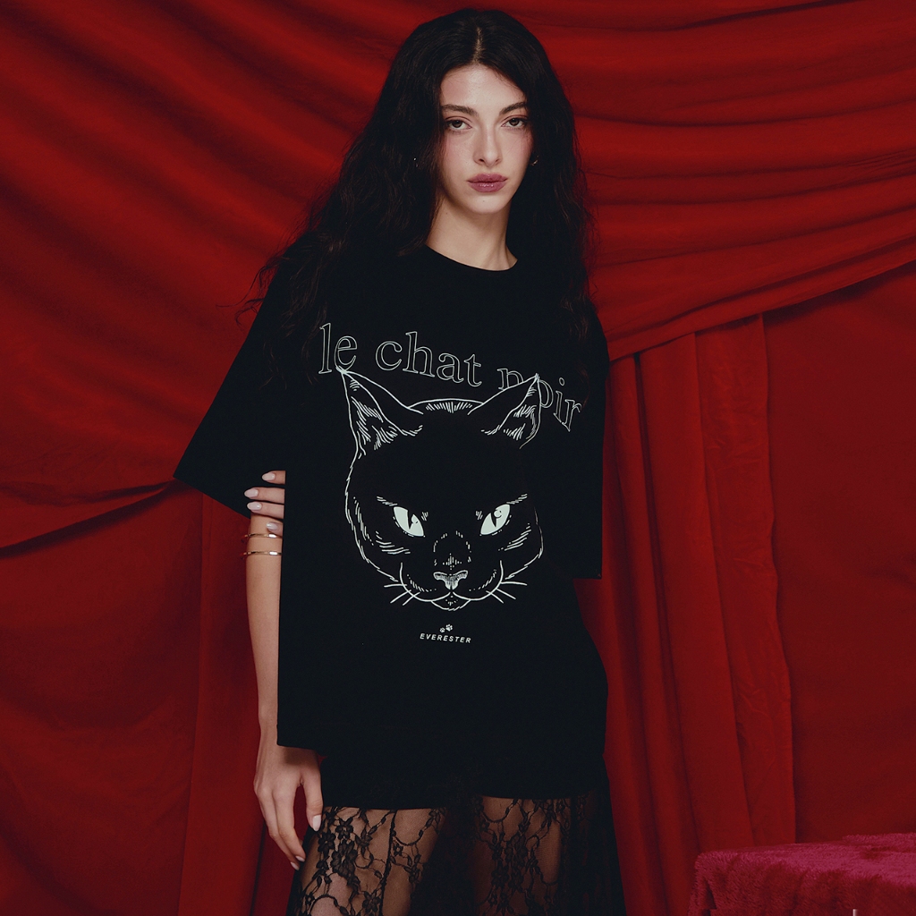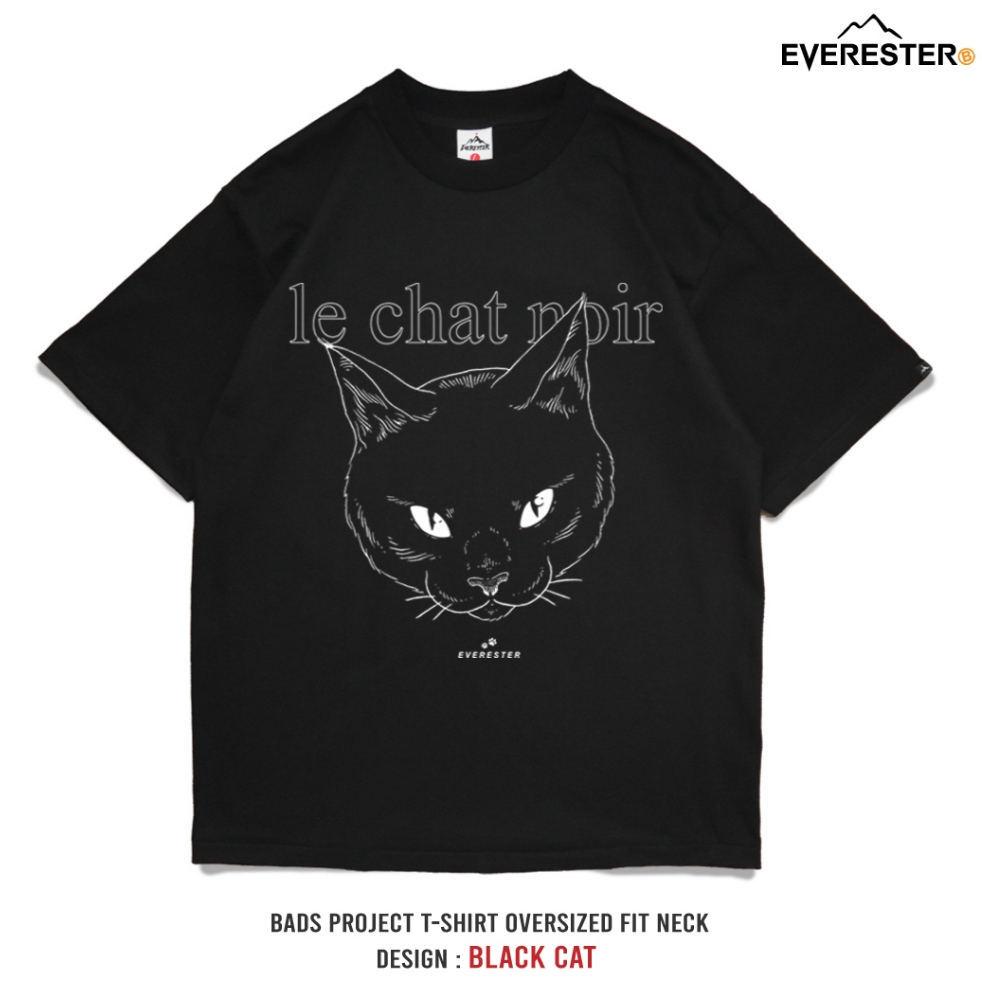 EVERESTER เสื้อยืด คอฟิต Heavy Cotton 100% รุ่น Lucky CaT เสื้อผ้า Oversize Unisex สีดำ exp
