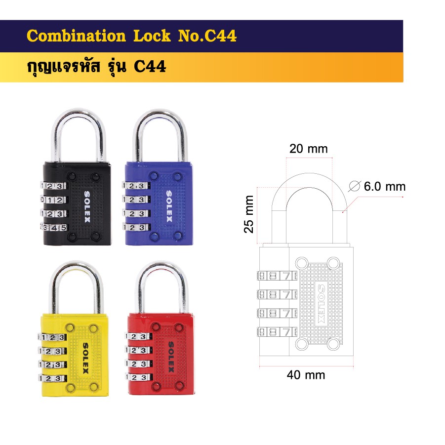SOLEX กุญแจคล้องรหัสผ่าน รุ่น C44 ซิ้งค์อัลลอย